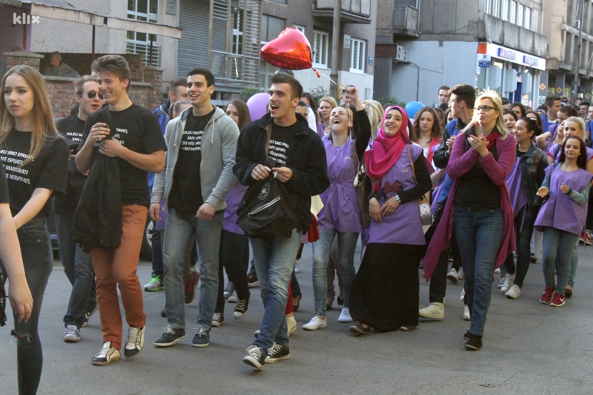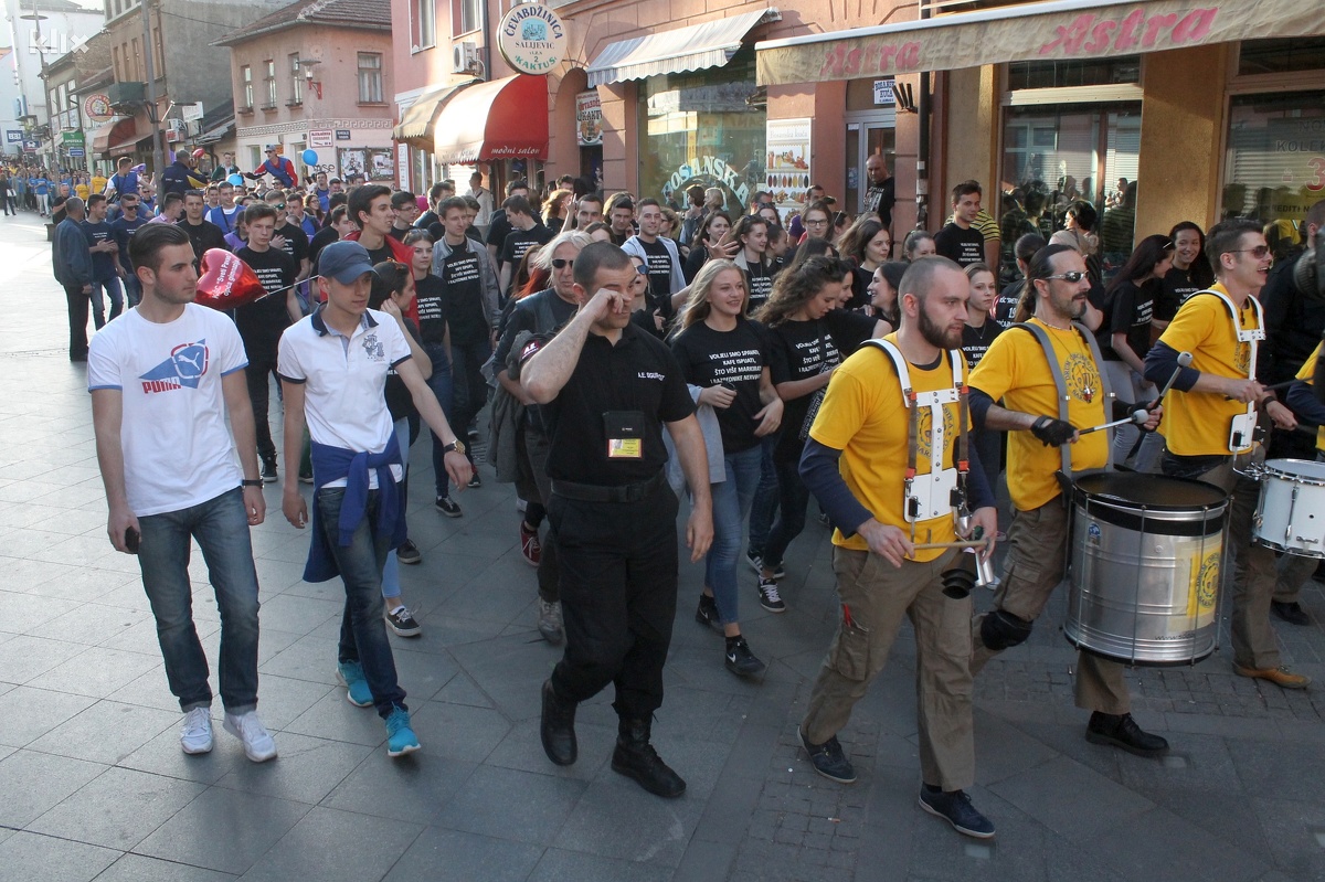 U majicama odjeljenja i škola koje su pohađali, sa šaljivim i zanimljivim natpisima, zenički srednjoškolci su se okupili na Trgu BiH gdje su napravili fotografije za sjećanje, a potom uz muzičku pratnju Sarajevo Drum Orchestra kretali se ulicama grada, sve do Trga Alije Izetbegovića.
