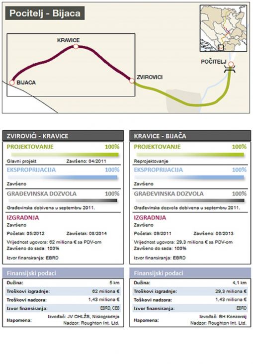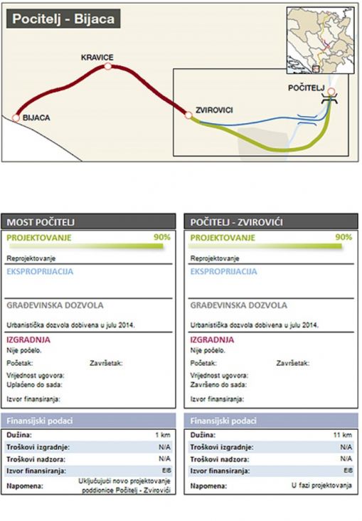 Dalji planovi tiču se dodjele ugovora na jugu (dionica od Zvirovića do Počitelja). Dokumentacija za tender poslana je Evropskoj investicijskoj banci, te se čeka njena saglasnost za nastavak projekta. Rok gradnje dionice Zvirovići – Počitelj je 30 mjeseci, što bi se uskladilo sa završetkom mosta na rijeci Savi, uz očekivano puštanje u promet krajem 2017. Za završetak te najsjevernije dionice osiguran je grant od 17,4 miliona eura i privode se kraju završne aktivnosti za 40 miliona eura kod EBRD-a.