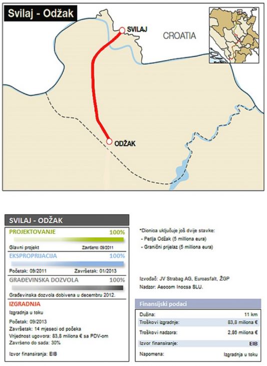Ujedno, potpisan je i ugovor o realizaciji dionice Svilaj – Odžak, to će biti prva dionica koja će biti završena i operativna u 2017. godini. Ostalo je praktično da postavimo završni sloj, te vertikalnu i horizontalnu signalizaciju i most, kako bi se ta dionica pustila u promet”, navodi naš sagovornik.