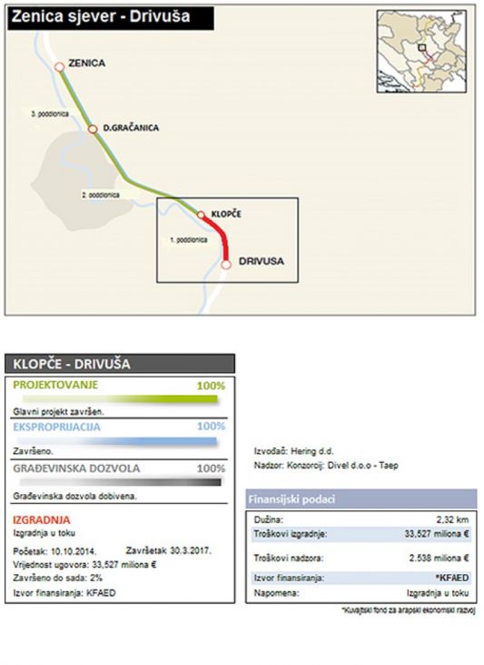 “Kod Zenice se grade dvije dionice, odnosno dva LOT-a – Drivuša – Klopče (LOT1) potpisali smo u oktobru 2014. s izvođačem Heringom, a vrijednost ugovora za izgradnju je 33,527 miliona eura. Ugovor o izgradnji dionice Koridora Vc Klopče – Pečuj (Donja Gračanica) odnosno LOT 2 potpisan je u maju 2016. godine. Vrijednost ugovora je 107.879.289,94 eura sa PDV-om, a sredstva su osigurana putem međunarodnih finasijskih institucija OPEC fonda za međunarodni razvoj i Evropske banke za obnovu i razvoj (EBRD)”, kazao je na početku razgovora za Radiosarajevo.ba direktor Salčin.