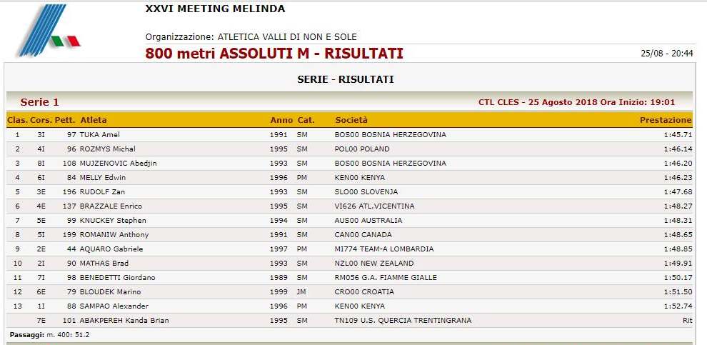 VIDEO+FOTO: Dominacija zeničkih atletičara u Italiji – Amel Tuka prvi, Abedin Mujezinović treći na mitingu u Clesu – Amel Tuka je pobjednik, a Abedin Mujezinović je osvojio bronzu u utrci na 800 metara na atletskom mitingu MELINDA 2018., u italijanskom gradu Cles, u sjevernoitalijanskog provinciji Trento.