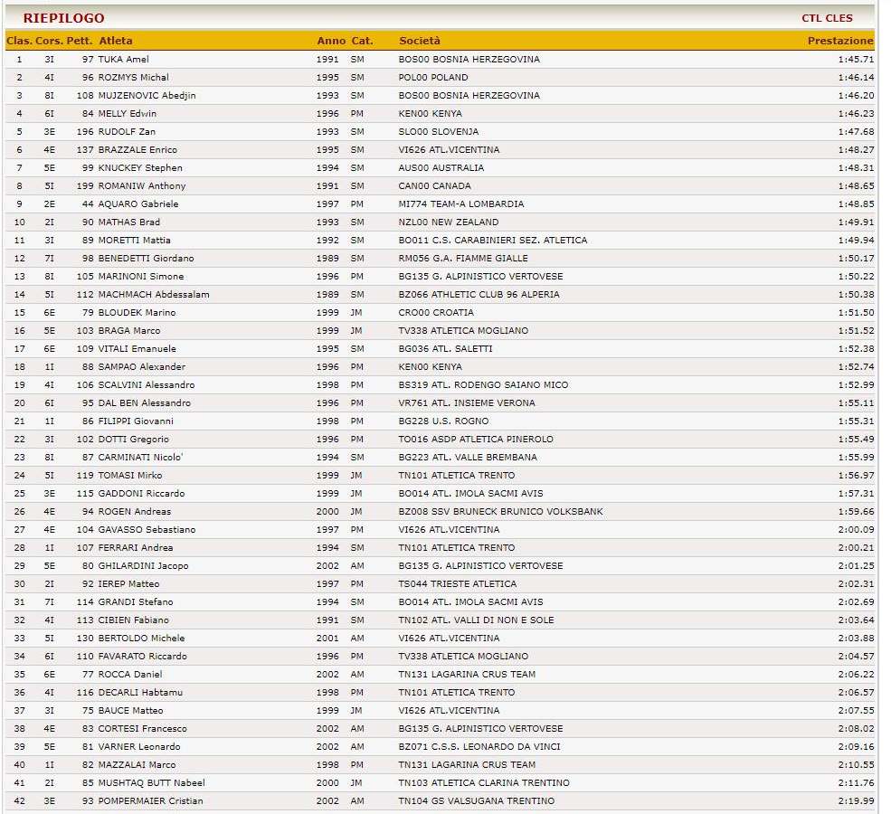 Između dvojice članova atletskog kluba Zenica “umiješao se” na pobjedničkom postolju Poljak Michal Rozmys. Abedin i Amel su istrčali sjajne rezultate, Amel je pobijedio sa 1.45.71, a sa 1.46.20 je Abedin bio treći.