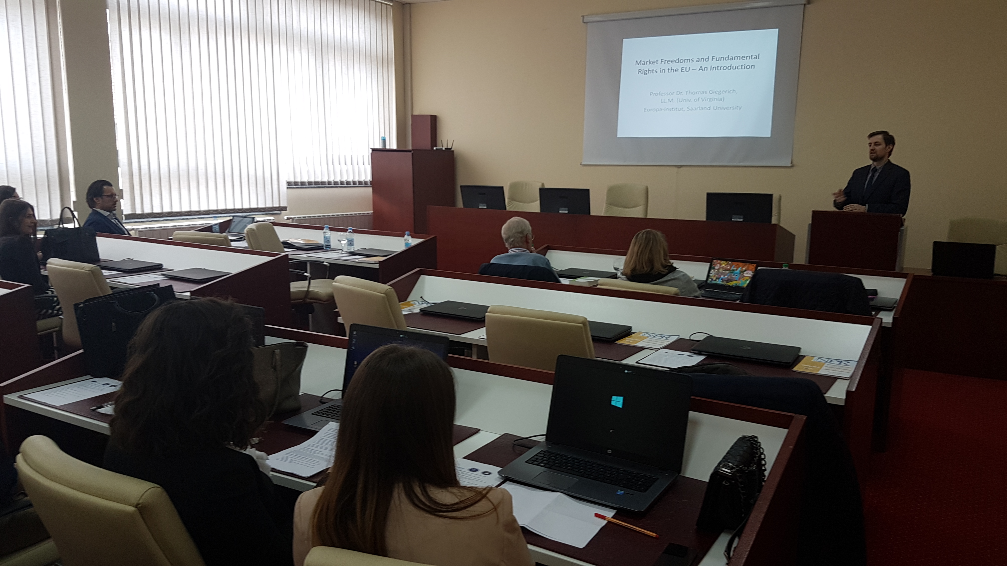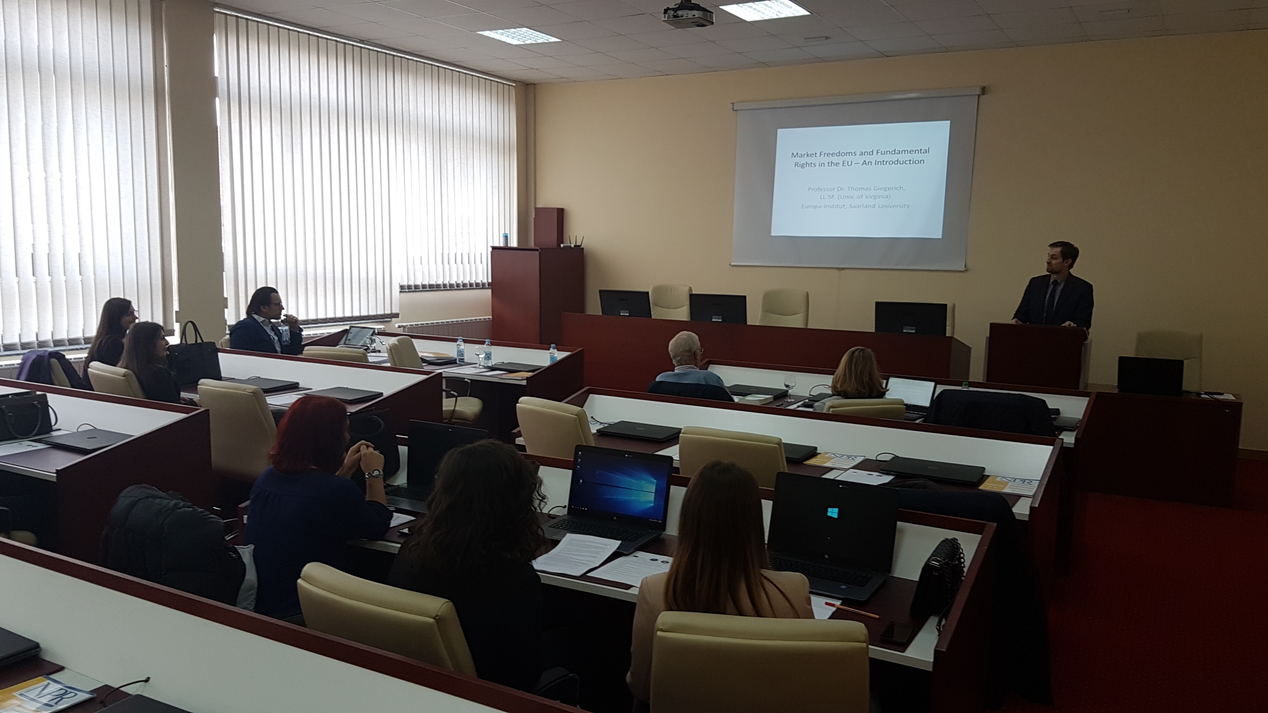 VIDEO+FOTO: Drugi Jean Monnet event Pravnog fakulteta UNZE je održan u multimedijalnoj sali Pravnog fakulteta u Zenici. Gost predavač je bio prof.dr. Thomas Giegerich, direktor Instituta za evropsko pravo Univerziteta u Saarlandu.
