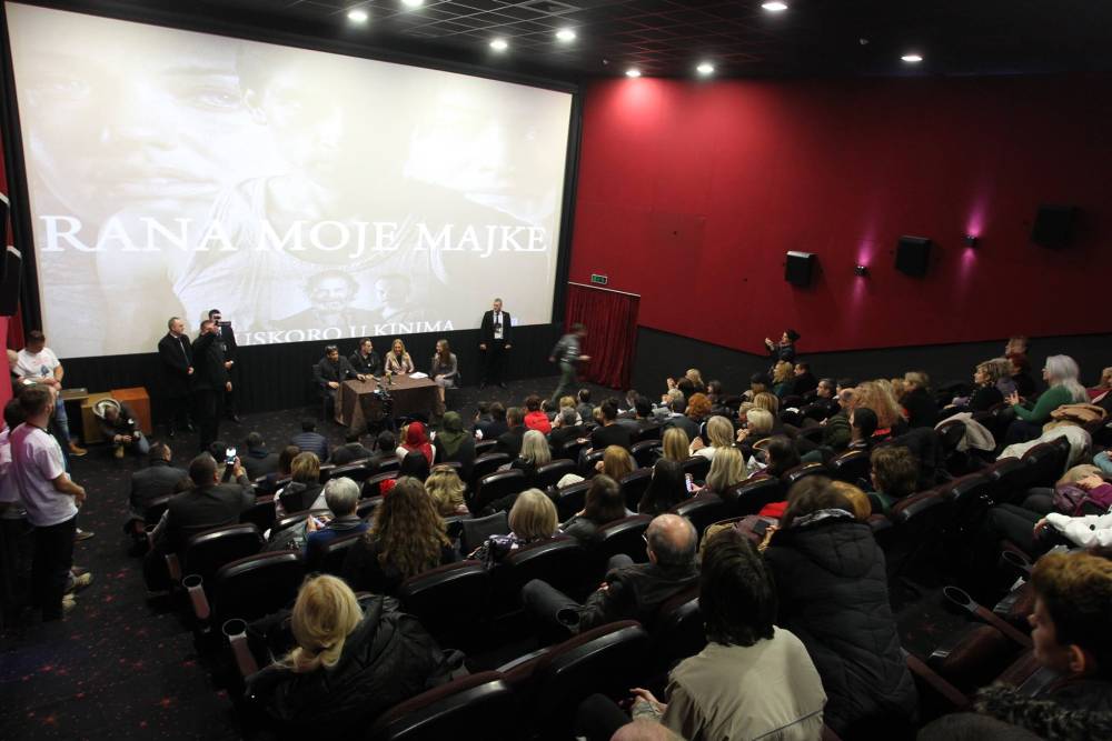 Potom je upriličen “poklon” i razgovor s publikom na zatvorenoj premijeri u Family centru Ekran. Projekciji filma prisustvovali su i štićenici Doma za djecu bez roditeljskog staranja, jer se upravo u filmu govori o momku Salihu koji sa 18 godina napušta Dom za nezbrinutu djecu u Zenici i uz preporuku svog odgajatelja dolazi do majke Nerme koju su silovali u ratu sa 16 godina.