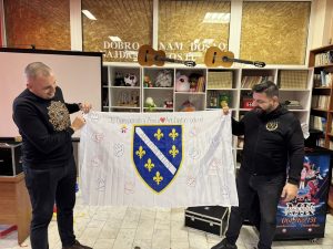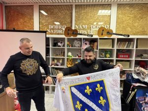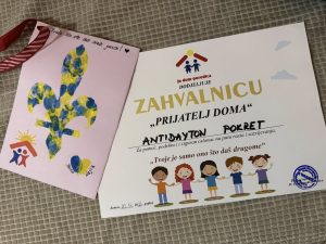 Kao znak zahvalnosti, djeca i uposlenici Doma uručili su gostima zastavu s ljiljanima, ukrašenu dječijim dlanovima, porukama i potpisima, kao i zahvalnicu i umjetnički rad s motivom ljiljana.