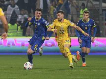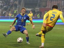 Tahirović je u 45. minuti snažno šutirao iz slobodnog udarca, prečka je spasila Rumune.
