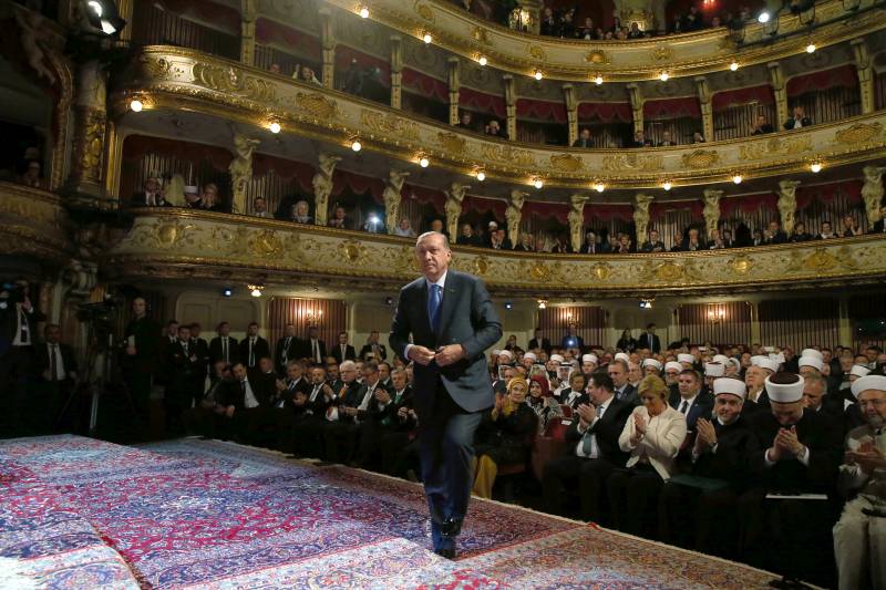 Predsjednik Republike Turske Recep Tayyip Erdogan na ceremoniji obilježavanja 100. godišnjice institucionalnog priznanja islama u Hrvatskoj održanoj u Hrvatskom narodnom kazalištu u Zagrebu. ( Murat Çetinmühürdar – Anadolu Agency )