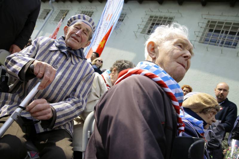 Preživeli logoraši u memorijalnom kompleksu nekadašnjeg nacističkog koncentracionog logora Mauthausen, nedaleko od austrijskog grada Linca tokom ceremonije otkrivanja spomen ploče žrtvama ovog logora sa područja Bosne i Hercegovine. ( Kemal Zorlak – Anadolu Agency )