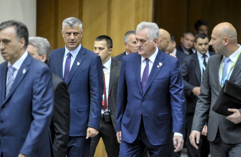 Predsjednik Kosova Hashim Thaci i Predsjednik Srbije Tomislav Nikolić tokom sastanak lidera procesa Brdo-Brijuni koji je održan u zgradi Parlamentarne skupštine Bosne i Hercegovine u Sarajevu ( Samir Yordamoviç – Anadolu Agency )
