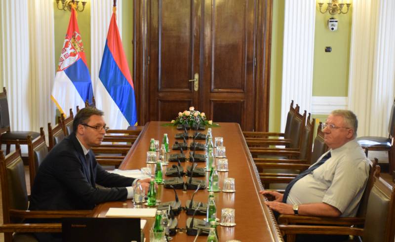 Predsednik Srpske radikalne stranke (SRS) Vojislav Šešelj na konsultacijama sa mandatarom Aleksandrom Vučićem o saradnji dve stranke u formiranju nove srbijanske vlade ( Kristina Maslareviç – Anadolu Agency )