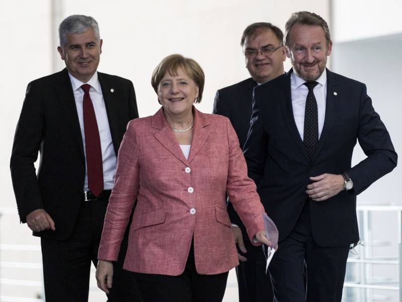 Predsjedavajući Predsjedništva BiH Bakir Izetbegović i članovi Predsjedništva Dragan Čović i Mladen Ivanić u službenoj posjeti Njemačkoj, gdje su se sastali sa kancelarkom Angelom Merkel ( Mehmet Kaman – Anadolu Agency )