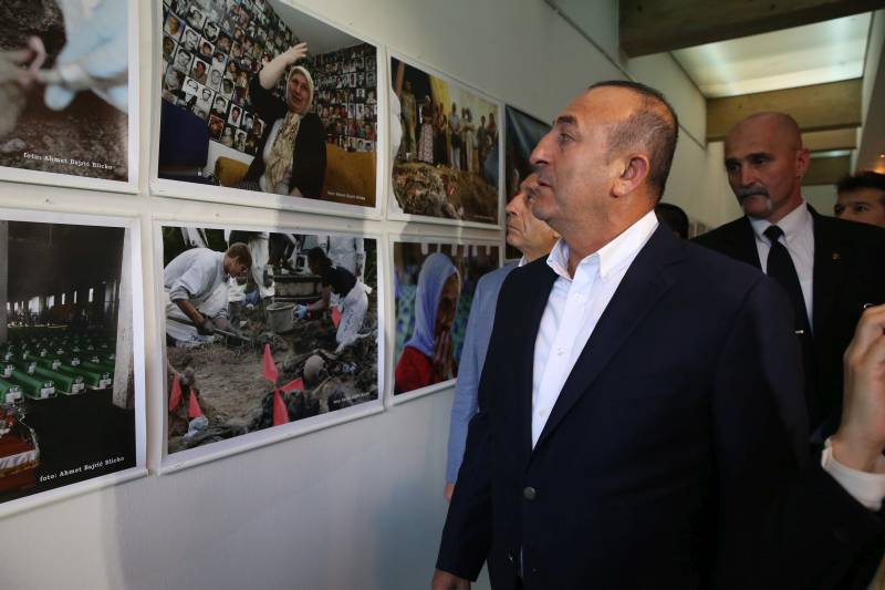 Ministar vanjskih poslova Turske Mevlut Cavusoglu koji je povodom učešća na obilježavanju 21. godišnjice genocida u Srebrenici stigao u Bosnu i Hercegovinu, boravio je u Sarajevu i tom prilikom posjetio je Kulturni centar Yunus Emre u kojem je postavljena izložba Ahmeda Bajrića posvećena genocidu u Srebrenici ( Mustafa Öztürk – Anadolu Agency )