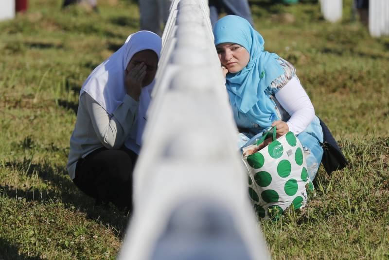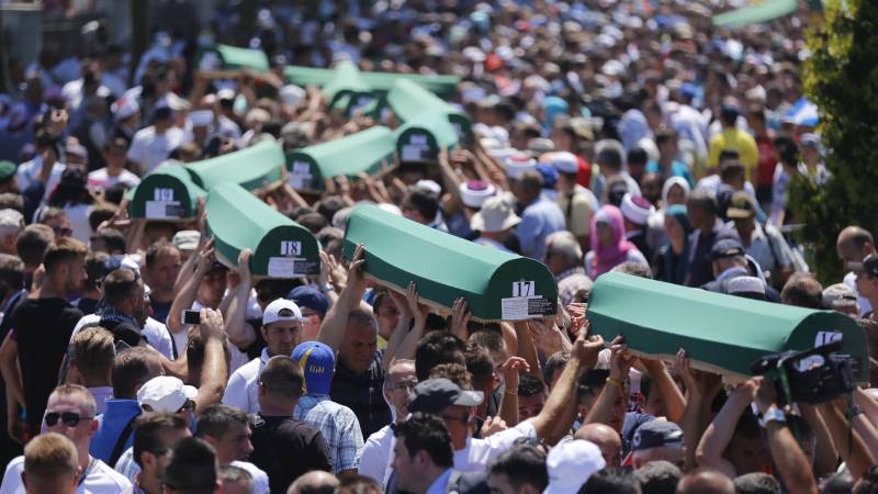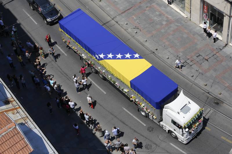 Nekoliko stotina građana Sarajeva ispunilo je prostor ispred zgrade Predsjedništva Bosne i Hercegovine u centru grada gdje je stigla kolona sa posmrtnim ostacima 127 ubijenih Srebreničana. Glavnu saobraćajnicu u Sarajevu ispunio je muk te jecaji okupljenih građana koju su, sa cvijećem u rukama, tiho učili Fatihu za duše nevino ubijenih. Pred sam ulazak kolone duž trase kretanja posute su latice bijelih ruža. ( Kemal Zorlak – Anadolu Agency )