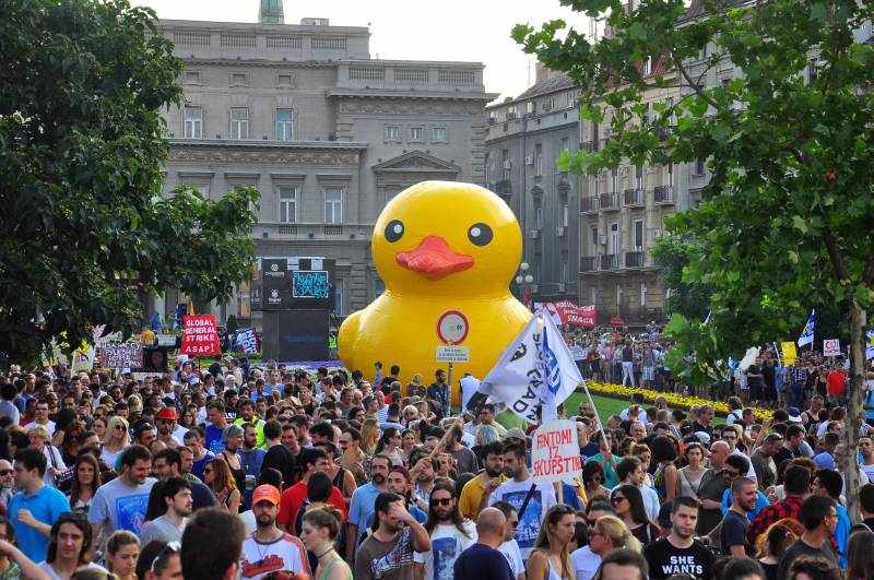 Nekoliko hiljada ljudi okupilo se ispred Skupštine Beograda, kako bi iskazalo protest zbog kršenja prava građana u Srbiji i nasilja koje se dogodilo u izbornoj noći kada je srušeno nekoliko objekata u četvrti Savamala i poručili da će se boriti dok krivi ne budu kažnjeni. ( Talha Öztürk – Anadolu Agency )