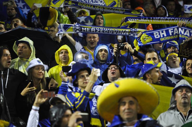 Navijači fudbalske reprezentacije Bosne i Hercegovine na Bilinom polju u Zenici tokom utakmice protiv selekcije Estonije koju je pobjedila rezultatom 5:0 u prvom kolu kvalifikacija za Svjetsko prvenstvo 2018. godine u Rusiji. ( Samir Yordamoviç – Anadolu Agency )