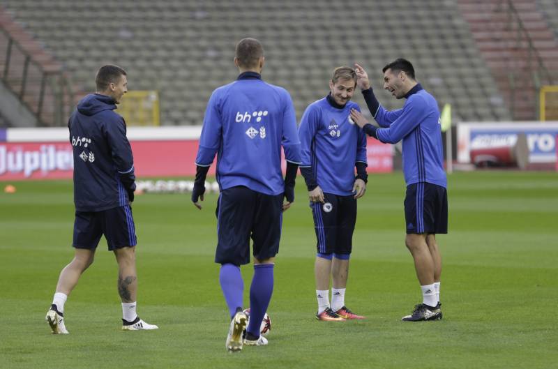 Fudbalski reprezentativci Bosne i Hercegovine na posljednjem treningu pred utakmicu kvalifikacija za Svjetsko prvenstvo ”Rusija 2018” koju će odigrati u Briselu protiv Belgije. ( Denis Zuberi – Anadolu Agency )