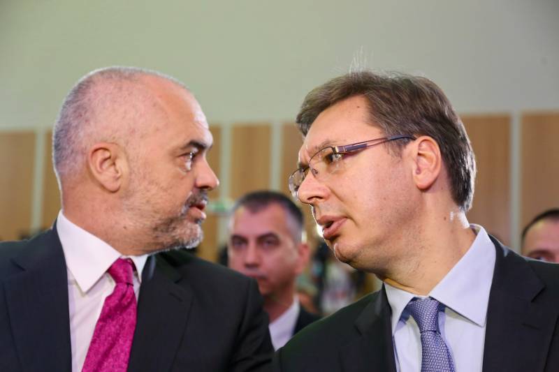 Premijer Albanije Edi Rama i premijer Srbije Aleksandar Vučić na otvaranju Biznis foruma Srbija – Albanija koji je održan u Nišu. ( Talha Öztürk – Anadolu Agency )
