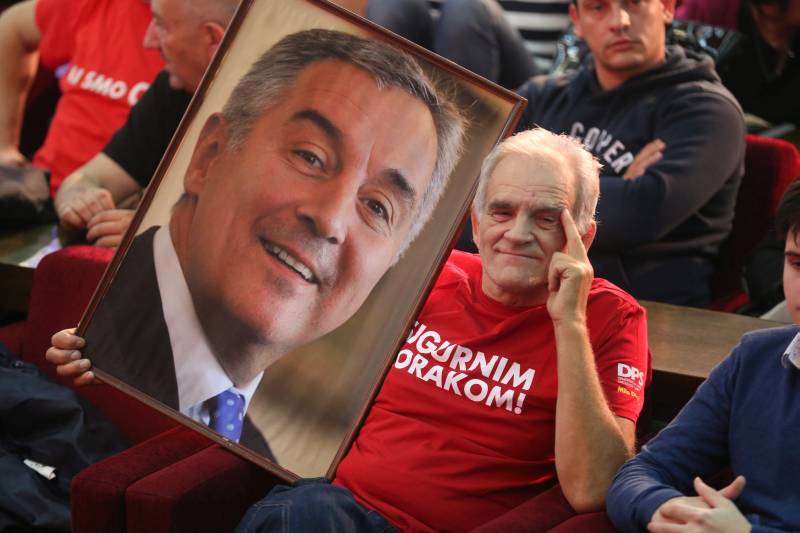 Pristalice i simaptizeri Demokratske partije socijalista Crne Gore (DPS) okupljeni u sjedištu ove stranke u Podgorici kako bi proslavili uspjeh na parlamentarnim izborima ( Kemal Zorlak – Anadolu Agency )