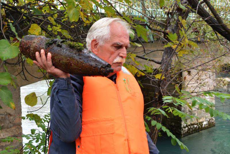 Specijalni tim Federalne uprave civilne zaštite u Blagaju kod Mostara ispod mosta Lahina ćuprija izvadio neeksplodiranu artiljerijsku granatu za haubicu od 122 milemetra. ( D.Maric – Anadolu Agency )