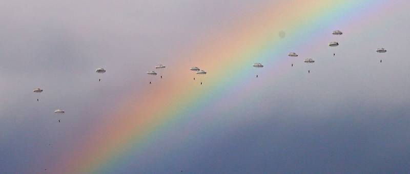 Vojnici iz Srbije, Rusije i Belorusije izveli su pokazni desant na aerodromu Kovin u blizini Beograda u okviru zajedničke vojne vežbe „Slovensko bratstvo“ ( Talha Öztürk – Anadolu Agency )