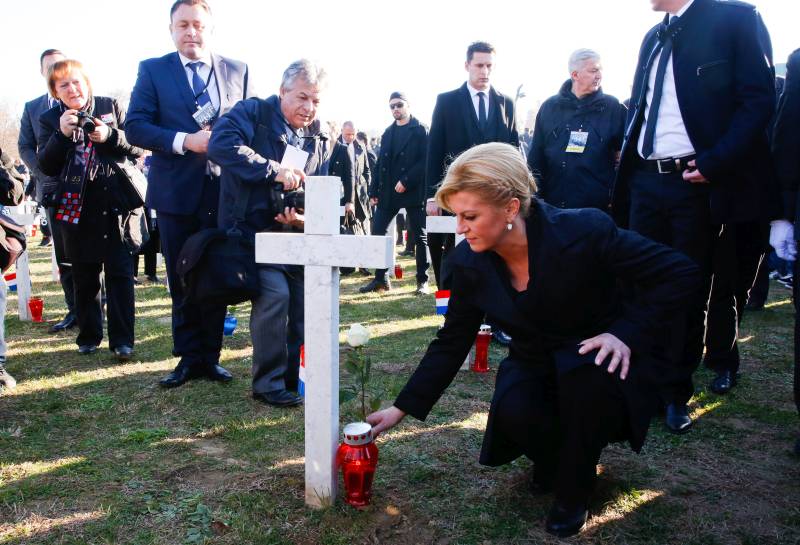 Više od stotinu hiljada građana iz Hrvatske i inozemstva, visoke delegacije predvođene predsjednicom Republike Hrvatske Kolindom Grabar Kitarović, predsjednikom Hrvatskog sabora Božom Petrovom i premijerom Vlade Andrejom Plenkovićem prisustvovali su danas polaganju vijenaca i misi za poginule i nestale branitelje na Memorijalnom groblju žrtava Domovonskog rata ( Mustafa Öztürk – Anadolu Agency )