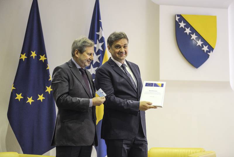 Komesar za susjedsku politiku i proširenje Evropske unije Johannes Hahn uručio je u Sarajevu predsjedavajućem Vijeća ministara BiH Denisu Zvizdiću Upitnik Evropske komisije ( Samir Yordamoviç – Anadolu Agency )