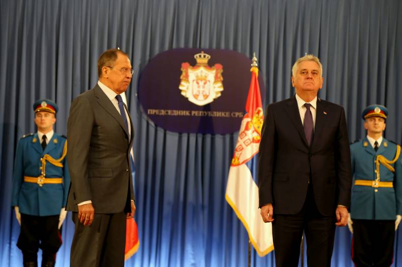 Srbijanski predsjednik Tomislav Nikolić tokom ceremonije uručivanja Ordena srpske zastave prvog stepena ministru vanjskih poslova Ruske Federacije Sergeju Lavrovu ( Emre Baştuğ – Anadolu Agency )