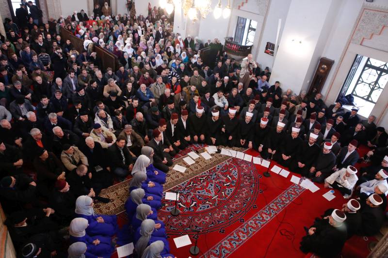 U Gazi Husrev-begovoj džamiji u Sarajevu održana je Centralna mevludska svečanost Rijaseta Islamske zajednice u Bosni i Hercegovini, povodom 12. rebiu-l-evvela, dana rođenja posljednjeg Božijeg poslanika Muhammeda s.a.v.s. ( Mustafa Öztürk – Anadolu Agency )
