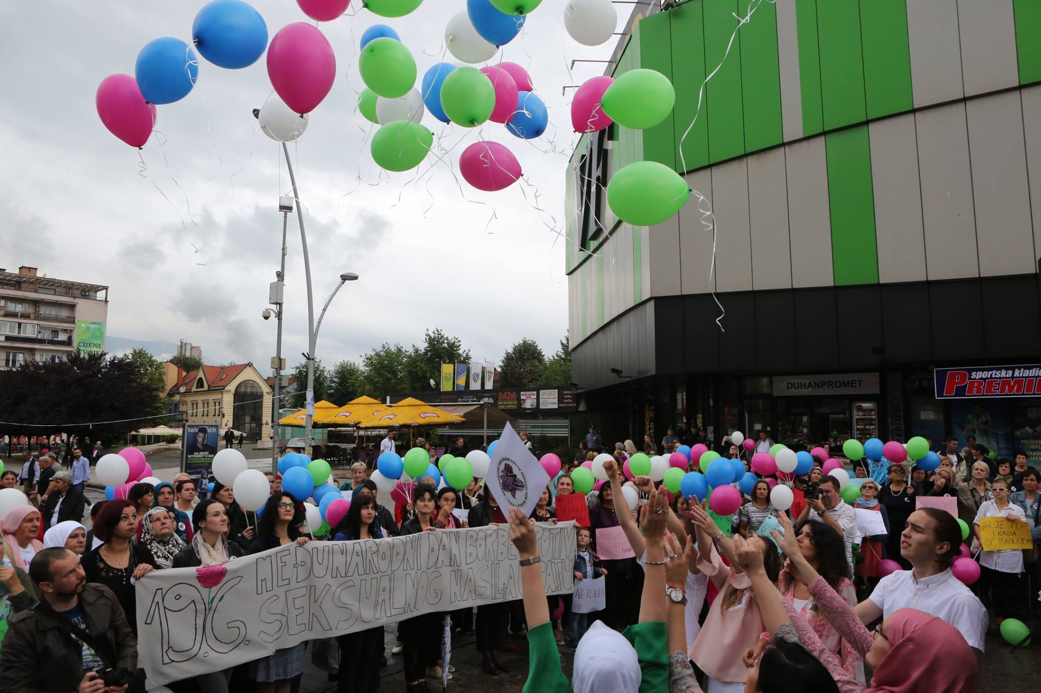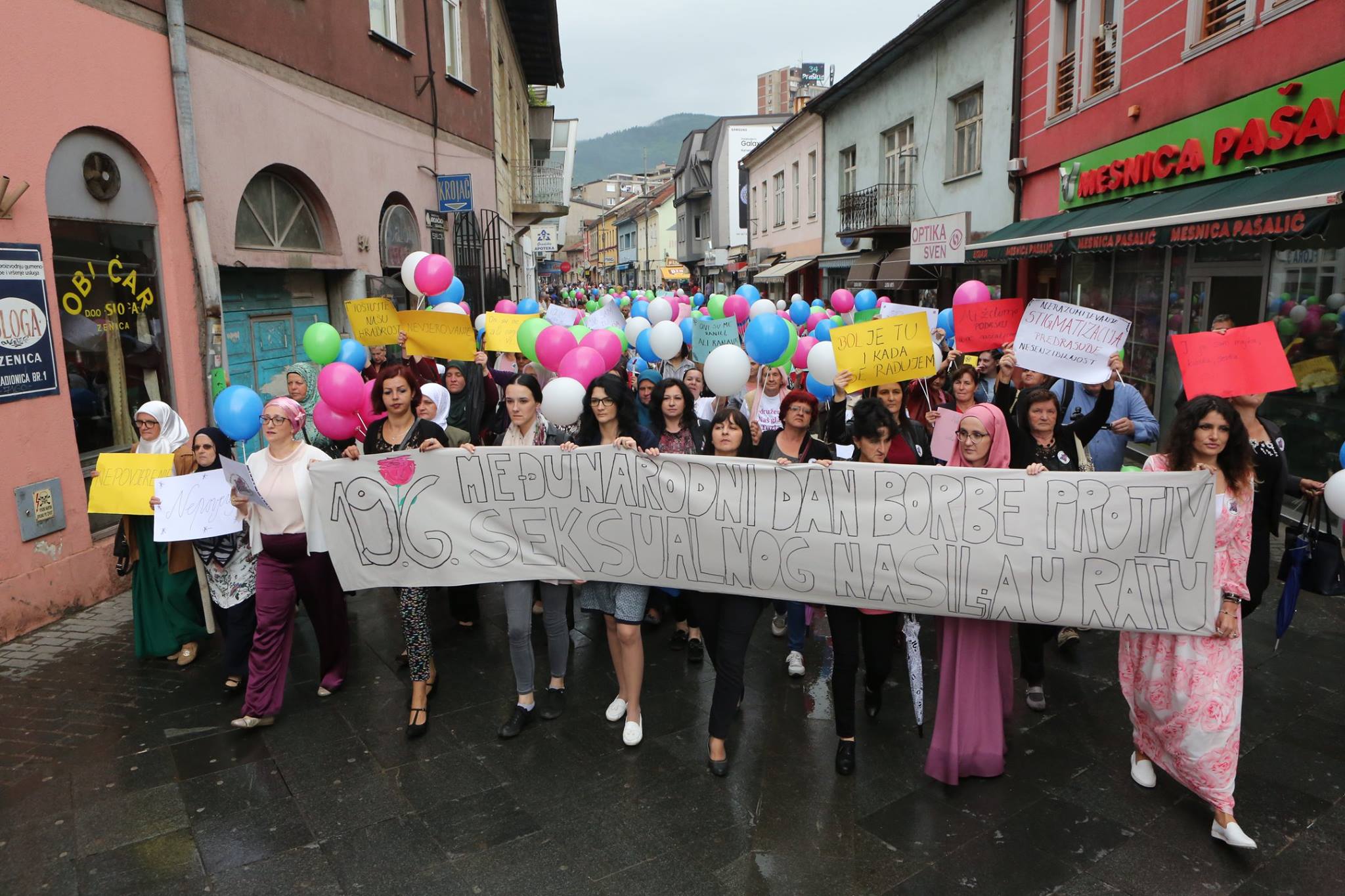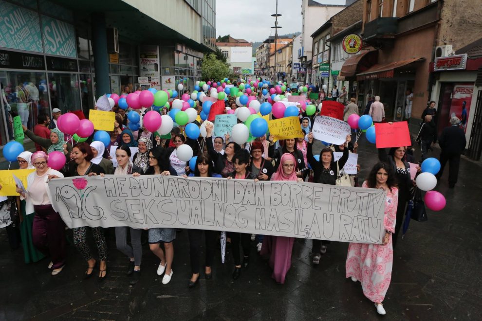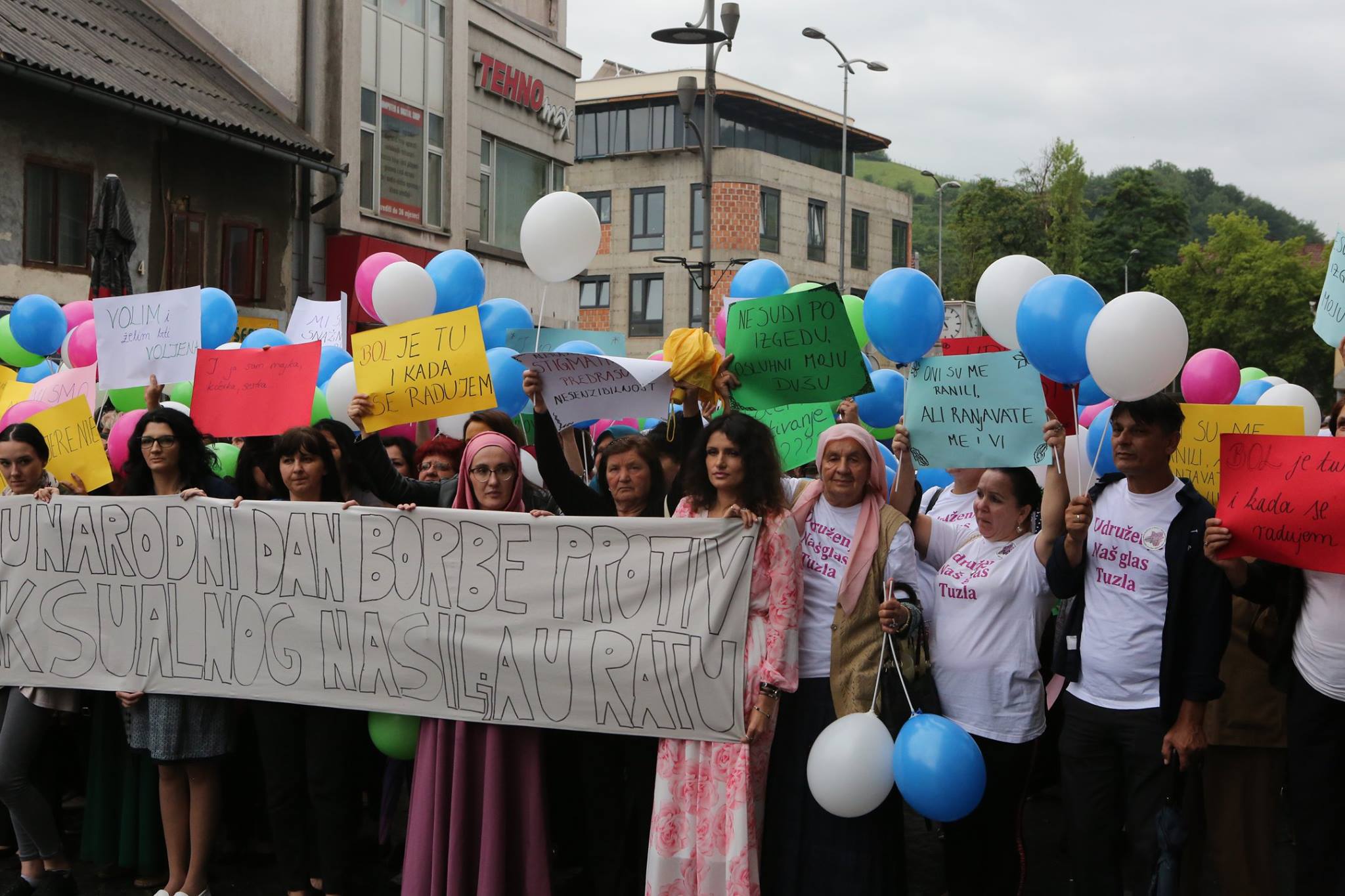 Bila je to prilika da ukažemo da se ratno silovanje ne smije zaboraviti a da smo obavezni pokazati poštovanje i solidarnost prema preživjelim žrtvama ratnog seksualnog nasilja. Stoga je ove godine zajedno sa preživjelim ženama i ostalim građanima i građankama organizovana mirna šetnja sa šarenim balonima koji predstavljaju snagu , preživjelih žrtava ratnog seksualnog nasilja, kako bi se podsjetili građani i građanke na pravo preživjelih žena na osmijeh i sreću. Tokom prigodnog programa za ovaj događaj ukazano je na značaj Međunarodnog dana, pročitane su životne priče preživjelih žena a prisutni i prisutne su posebno bili ganuti porukama mladih koje su upućene preživjelim ratno seksualno nasilje: