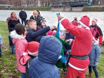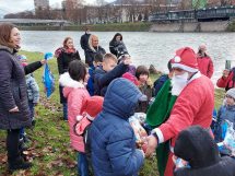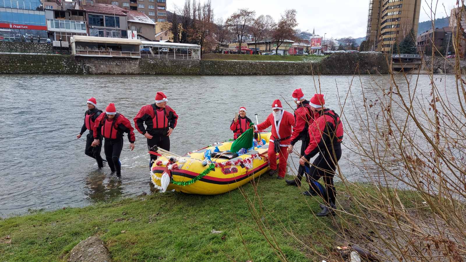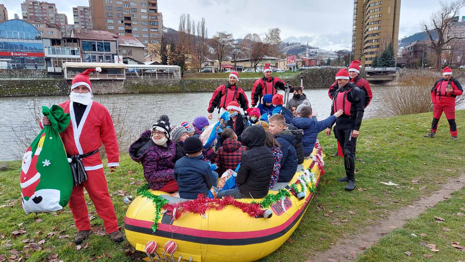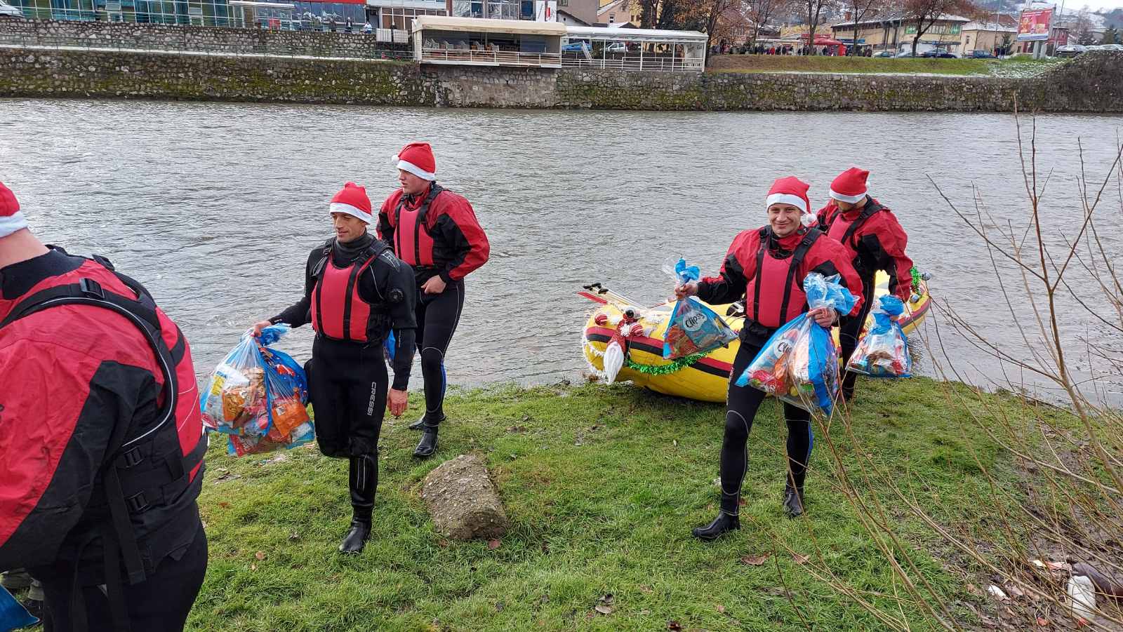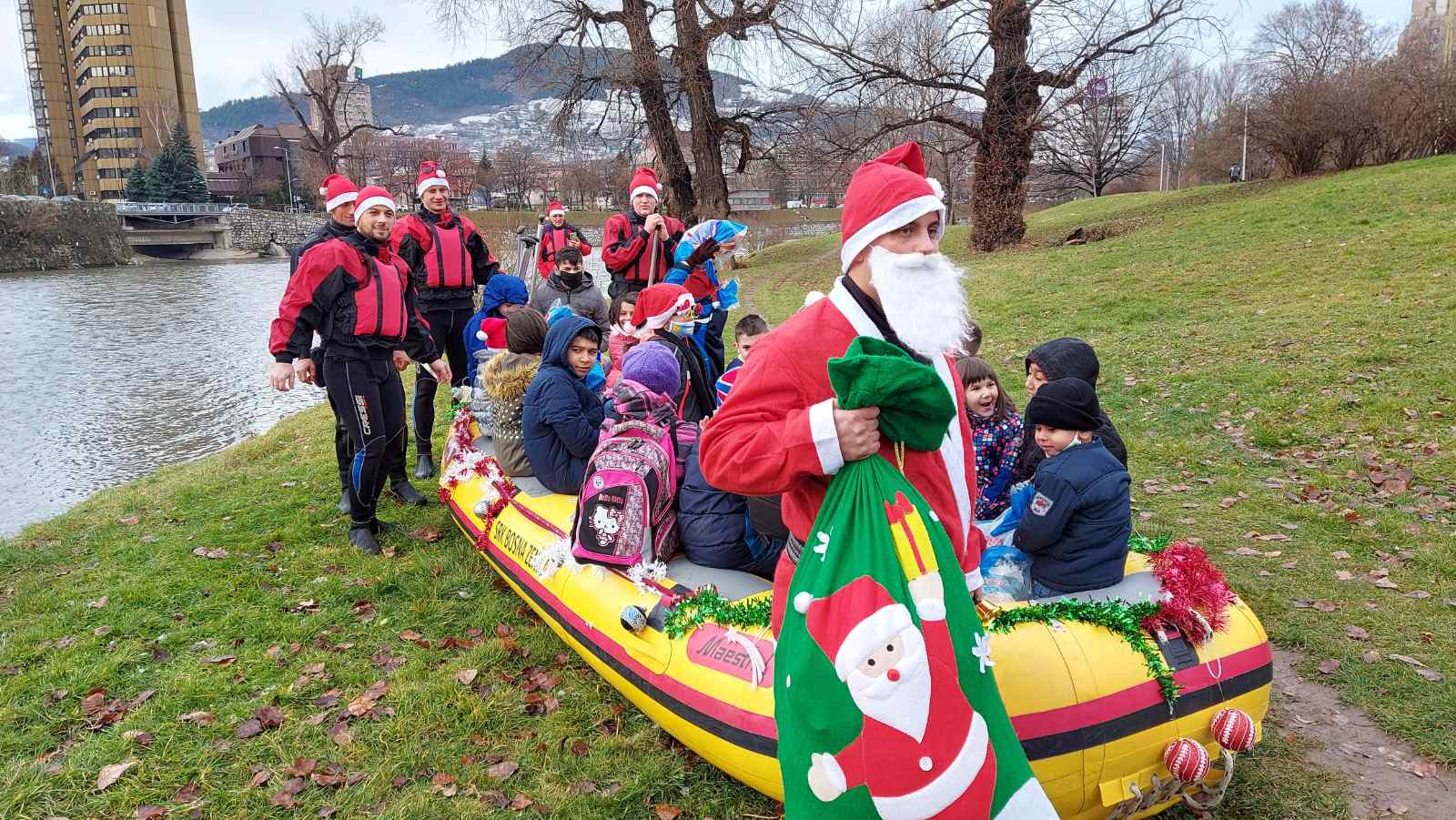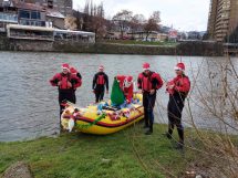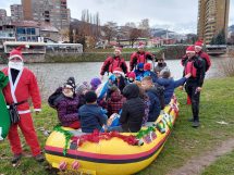ISS Zenica ove godine je imao poseban zadatak – da dovede Djeda Mraza djevojčicama i dječacima na rijeci Bosni. U kostimima Djeda Mraza, članovi ISS Zenica su doplovili u spasilačkom čamcu na obalu rijeke Bosne kod Jalijskog mosta i podijelili radost sa mališanima.