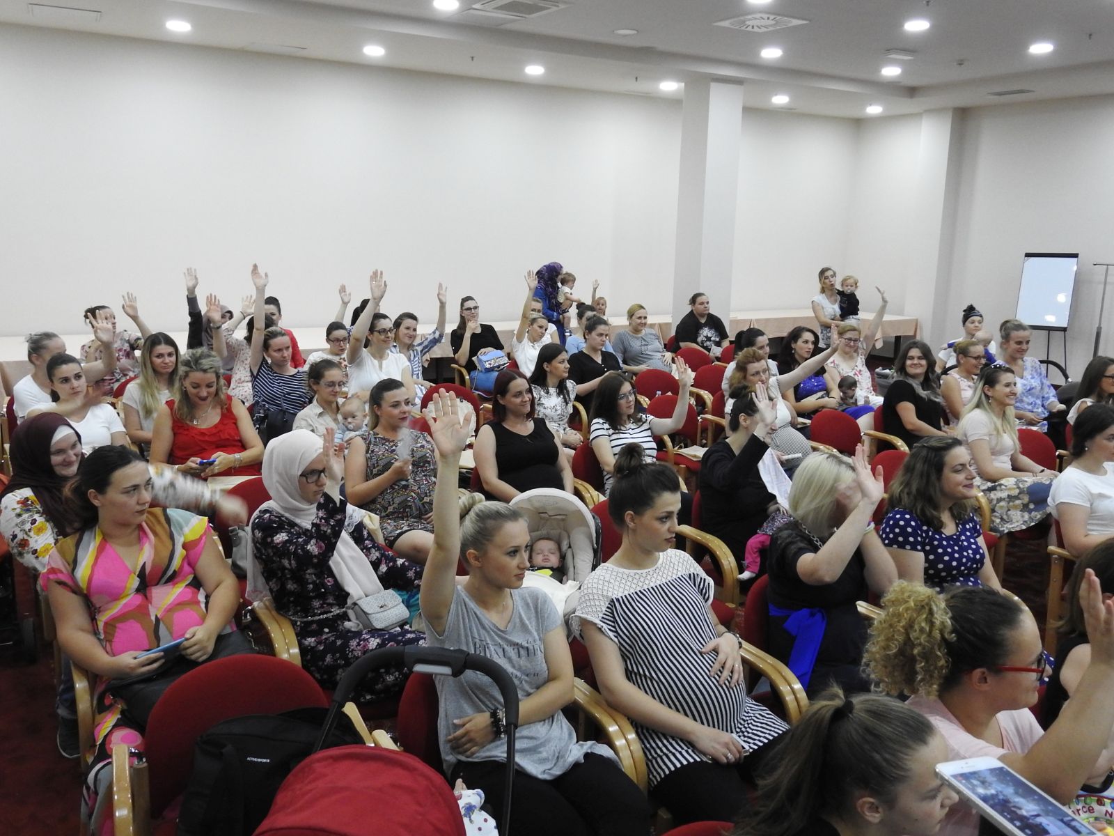 Više od stotinu budućih majki, porodilja, ali i majki koje su na predavanje došle sa bebama, nakon 70-minutnog predavanja više su od dva sata razgovarale sa dr. Hodžićem i Adisom Hotić, interesujući se o svim detaljima i prednostima dojenja. Razgovor je nastavljen i nakon predavanja u neformalnom druženju predavača i majki.