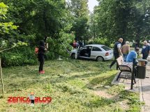 Jutros oko 8:30h na raskršću ulica Adolfa Goldbergera i Aska Borića došlo je do izlijetanja sa ceste automobila prilikom čega je oštećen stub i drvo u parku Papirna.