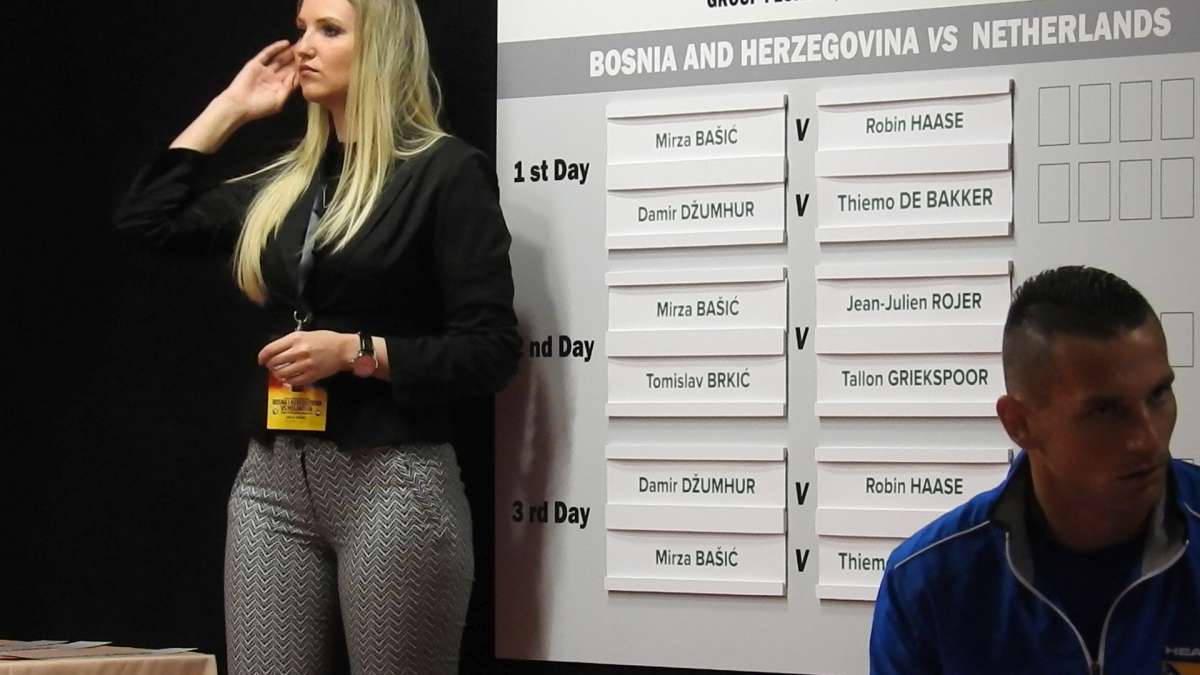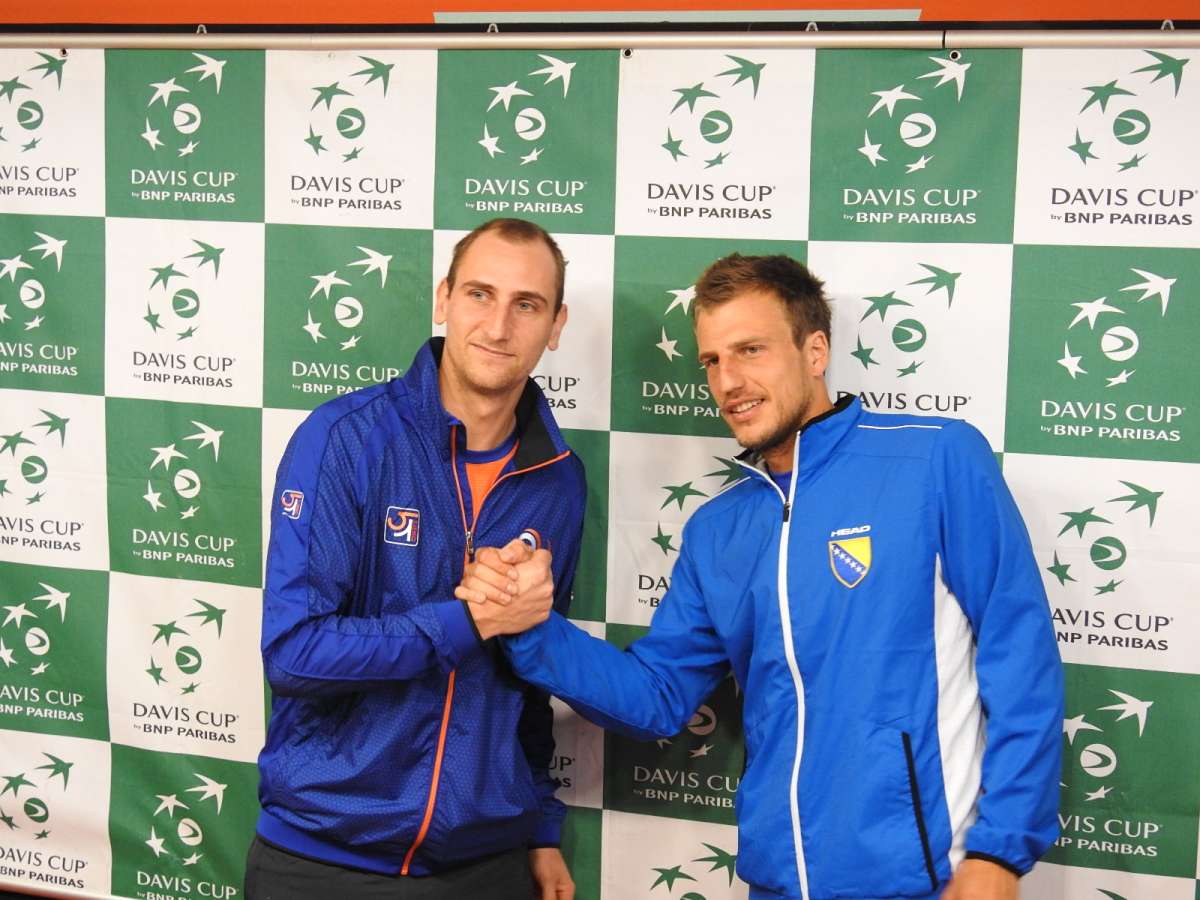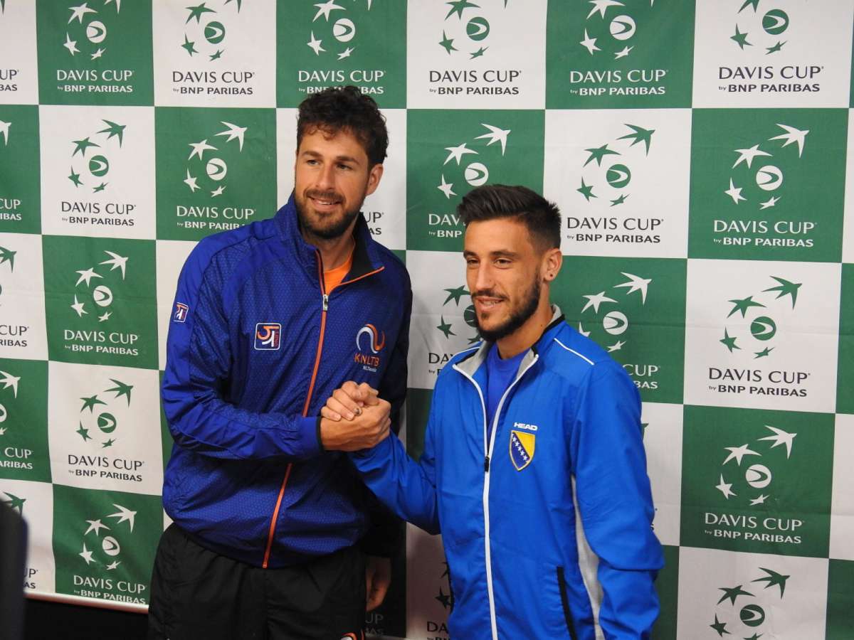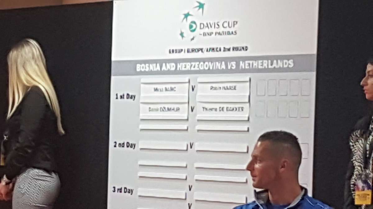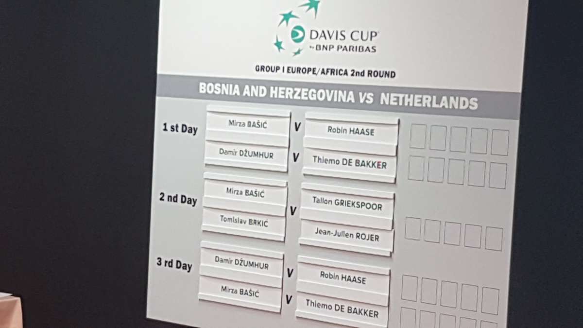 Sutra, petak 07.aprila od 14 sati prvi će snage odmjeriti u singl  meču Mirza Bašić i najbolji igrač Holandije Robin Haase, a nakon završetka ovog meča igraju Damir Džumhur i Thiemo De Bakker.