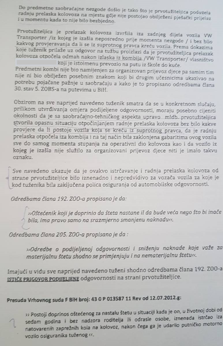 Također, osiguravajuće društvo u priču “uključuje” i treće, parkirano vozilo, iako prvostepena presuda Općinskog suda u Zenici JASNO I GLASNO imenuje krivca, vozača “Golfa”. tako se nadležni u osiguravajućoj kući “igraju sudija i prije suda”, procjenjujući da je svako drugi kriv, naravno, osim njihovog klijenta.