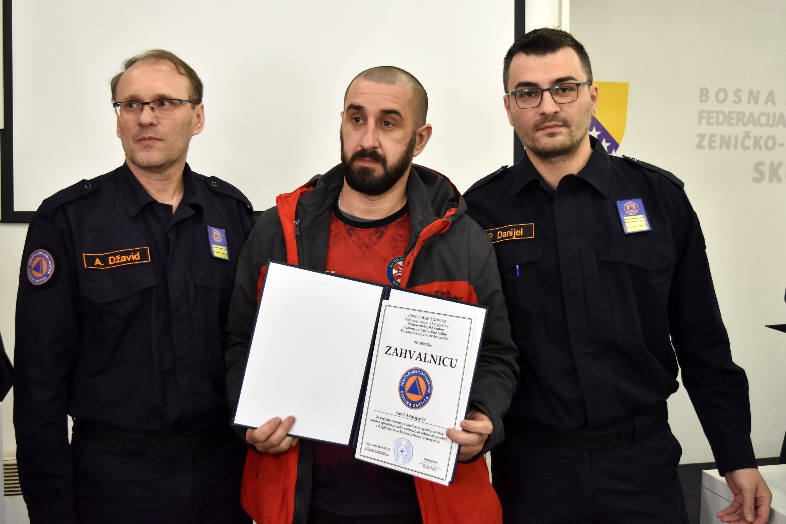 Zahvalnice je dobilo 18 spasilaca, među kojima i Almir Tabaković iz GSS Zenica, koji u akciji učestvovao sa svojim psom Atosom. Ovo su priznanje dobile i njegove kolege iz zeničke stanice Emir Hodžić, Faris Hinović, Alma Okanović, Denis Okanović, Sabir Patković, Samid Grabus i Spahija Tokalić, kao i pripadnici GSS Visoko Kenan Ćatović, Adin Šehović i Samra Džafić, GSS Zavidovići Amna Bajraktarević, Jasmin Ferhatović, Jasmina Omerbegović, Ljubo Čuščević i Samir Bešlija te pripadnici GSS Kakanj Enes Kozlo i Sabit Avdispahić te Mjesna zajednica Misurići, Općina Maglaj. Pismena zahvalnica je uručena i prethodnom komandantu KŠCZZDK-a i ministru u prethodnom sazivu Vlade ZDK Arnelu Isaku.