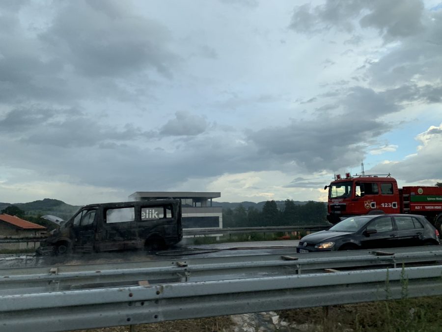 Na autoputu Sarajevo – Zenica, u mjestu Okolišće zapalio se kombi, nakon čega su nastale kilometarske kolone.
