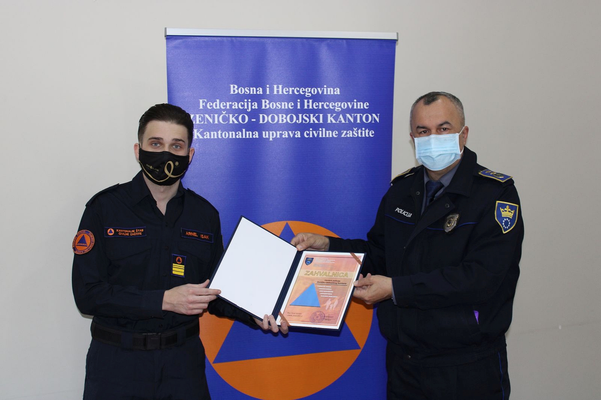 Pisanu pohvalu civilne zaštite dobili su Smeraludin Čizmo iz Breze i Higijensko-epidemiološka služba JU “Dom zdravlja” Visoko, dok su pisane zahvalnice civilne zaštite dobili: JZU Dom zdravlja “Izudin Mulbećirović Izo” Tešanj, JU “Dom zdravlja” Olovo, Policijska stanica Magaj, JU “Dom zdravlja” Maglaj, Ferid Hodžić iz Zavidovića, Profesionalna vatrogasna jedinica Visoko, Ministarstvo unutrašnjih poslova ZDK, Oružane snage BiH, Đenana Čolaković iz Stručne službe za razvoj i međunarodne projekte ZDK, Aida Mulić i Dino Pašalić iz Kantonalne direkcije za robne rezerve ZDK, Adem Mecavica iz Press službe ZDK, Safet Kubat iz Instituta za zdravlje i sigurnost hrane Zenica, Enes Memić iz Federalne uprave civilne zaštite, Razvojni program Ujedinjenih naroda u BiH (UNDP), Delegacija EU u BiH, JU “Dom zdravlja” Usora, JU “Dom zdravlja” Žepče, JU “Dom zdravlja” Zenica, JU “Dom zdravlja” Kakanj, JU “Dom zdravlja” Breza, JU “Dom zdravlja” Vareš, JU “Poliklinika sa dnevnom bolnicom” Doboj Jug, JU “Dom zdravlja sa poliklinikom” Zavidovići, COVID odjeljenje Doma zdravlja Zenica, Ministarstvo zdravstva ZDK, Uprava policije ZDK, Kantonalna uprava za inspekcijske poslove ZDK, Crveni križ Grada Zenica, Crveni križ Grada Visoko, Crveni križ općine Breza, Crveni križ općine Doboj Jug, Crveni križ općine Kakanj, Crveni križ općine Maglaj, Crveni križ općine Tešanj, Crveni križ općine Olovo, Crveni križ općine Zavidovići, Crveni križ općine Usora, Crveni križ općine Vareš, Crveni križ općine Žepče i Crveni križ Zeničko-dobojskog kantona.