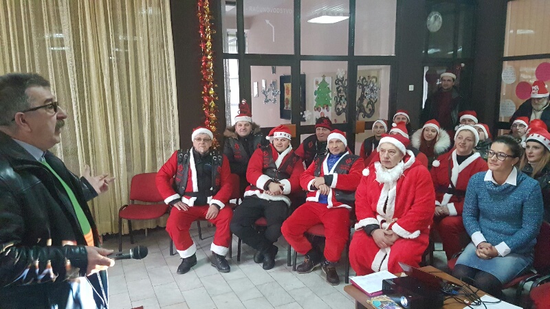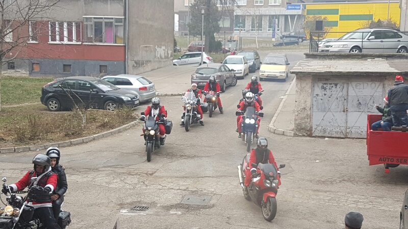Prikupljali su sredstva, prodavajući kekse i napitke u centru grada, a danas su se obukli u odore Djed-mrazova i na motorima iz centra grada došli do Dom-porodice.