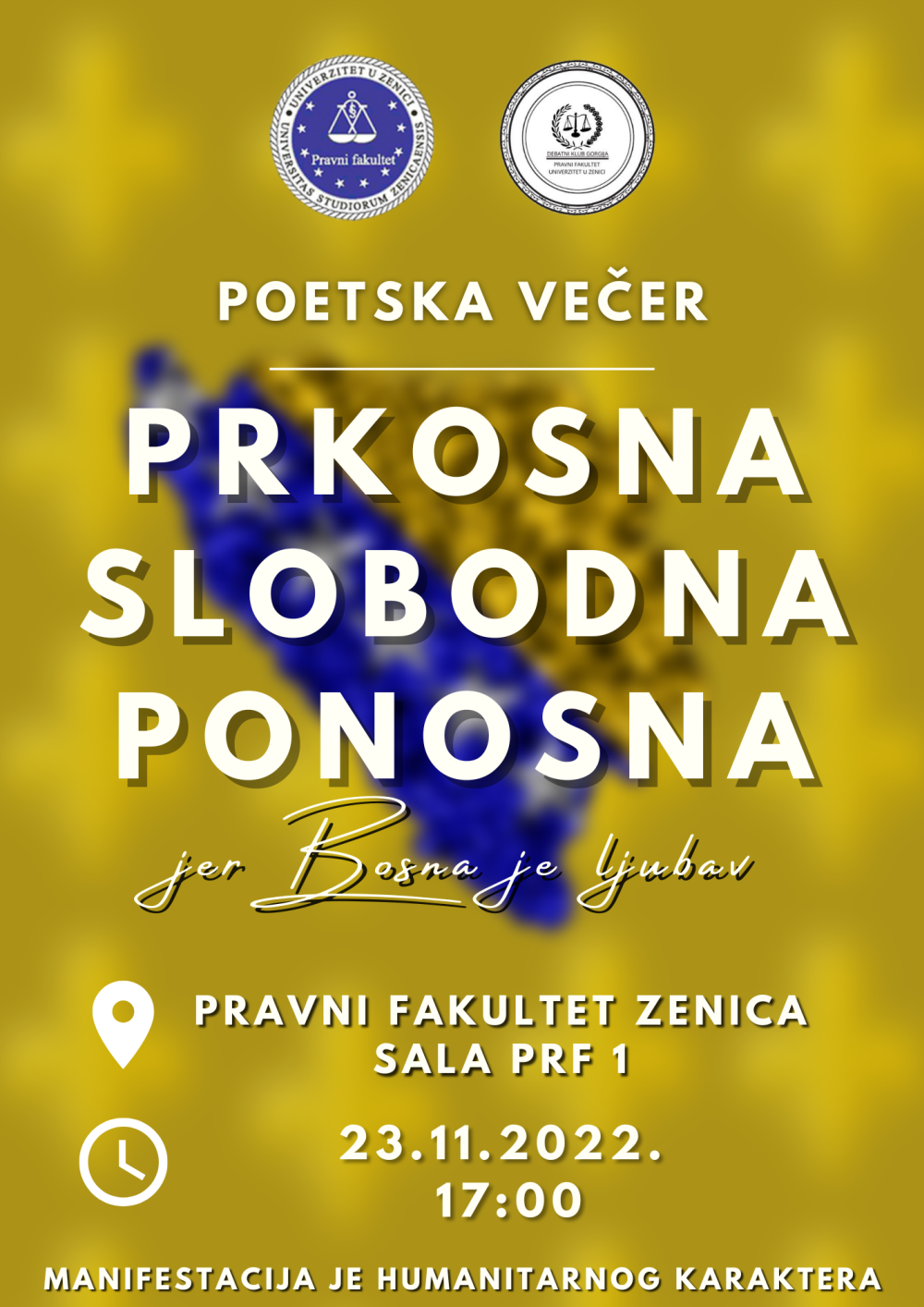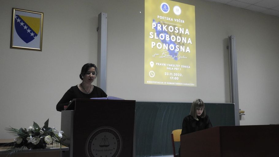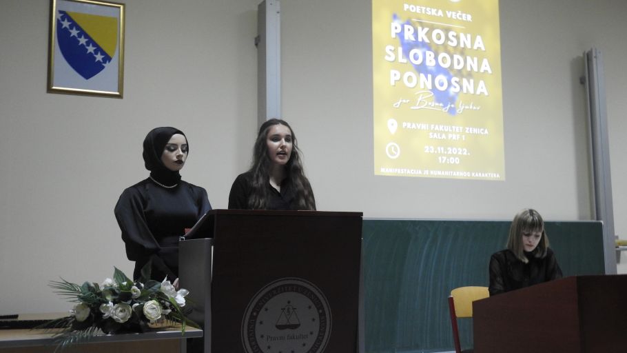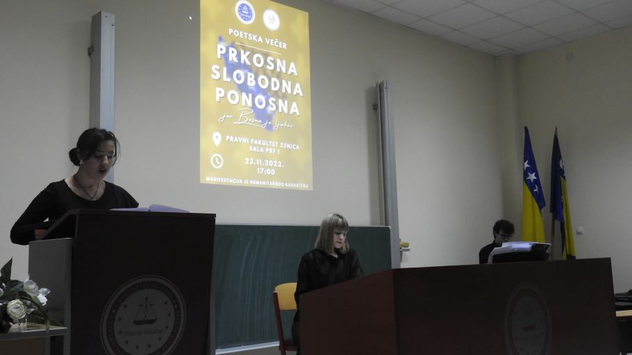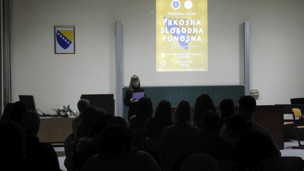 Na Pravnom fakultetu Univerziteta u Zenici realizovan je projekat poetske večeri na temu “Prkosna Slobodna Ponosna, jer Bosna je ljubav”.