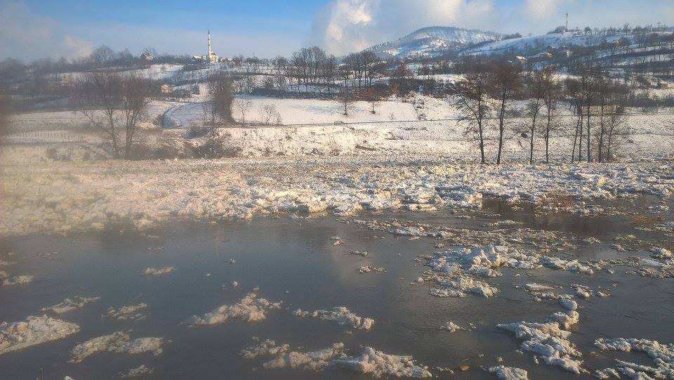 VIDEO+FOTO: Nadomak Janjića kritično: sante leda blokirale protok, rijeka Bosna se izlila na više mjesta