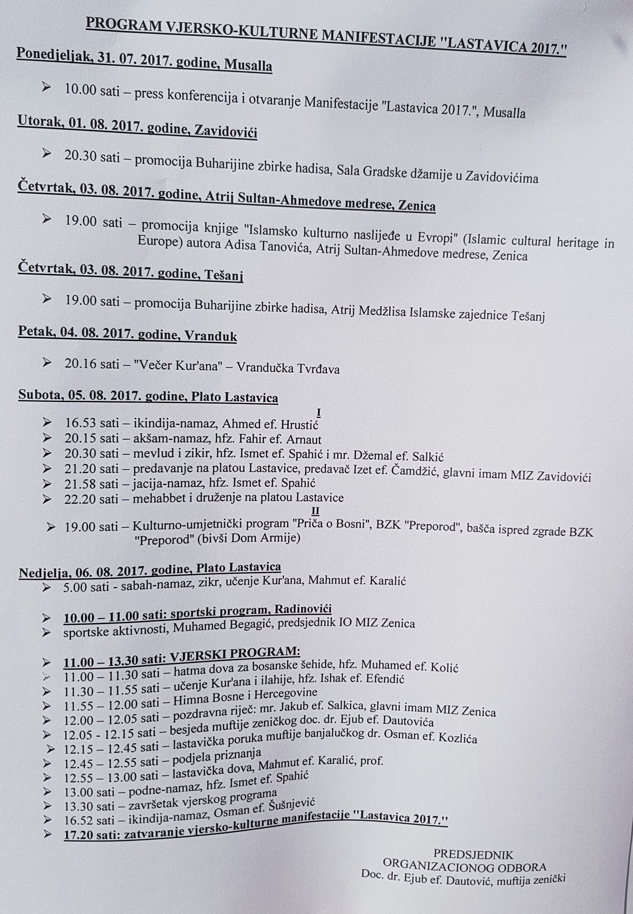 Danas je Organizacioni odbor Lastavice 2017. najavio sadržaje ove vjersko-kulturne manifestacije.