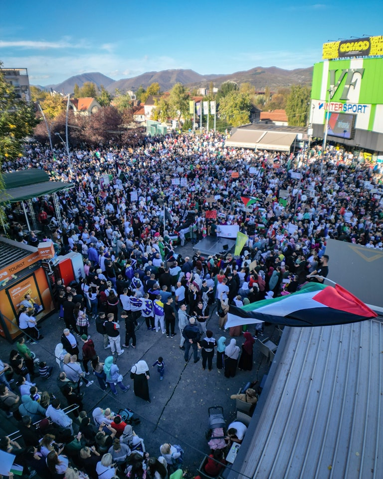 Mirnim protestom i šetnjom gradskim ulicama te zajedničkim učenjem dove za Palestinu, u organizaciji Udruženja građana “HU- Hedija“, nekoliko hiljada građana tog grada odaslalo je sa Trga “Alija Izetbegović” poruke podrške stanovnicima Gaze, koji se već nekoliko dana nalaze pod stalnom paljbom granata izraelske vojske.