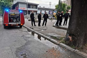 Naš prijatelj, fotoreporter Jasmin Hadžić Blicko zabilježio je neobičnu intervenciju u Masarykovoj ulici. Na poziv građana pripadnici Profesionalne vatrogasne jedinice su gasili i lokalizovali požar u drvetu. Građani su primjetili dim i pozvali policiju. Policija je obavila uviđaj. Pogledajte video i foto galeriju: