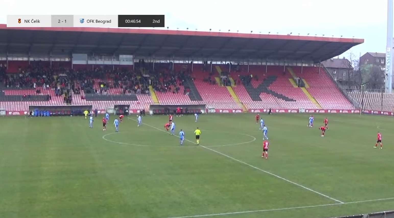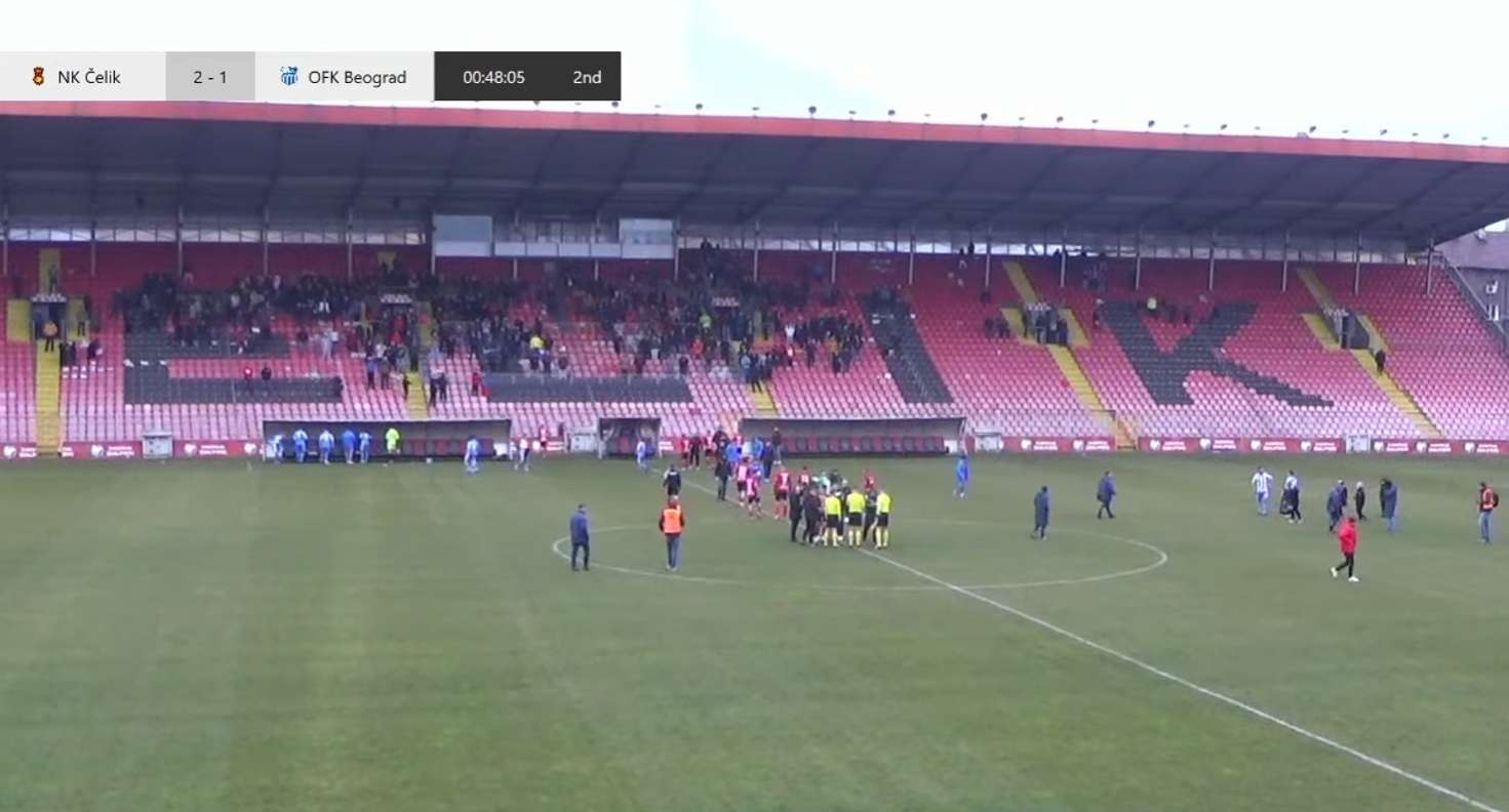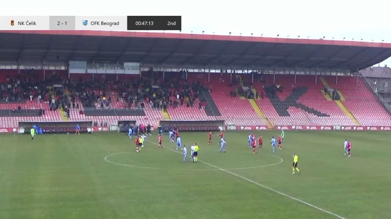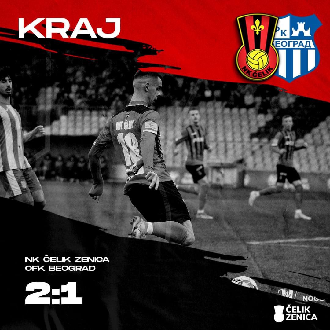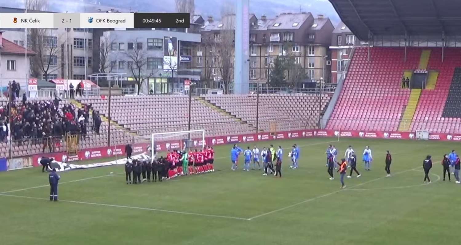 Prije početka utakmice, predsjednik Čelika Denis Mušović uručio je prigodan poklon predsjedniku OFK Beograda Saši Stevanoviću, a nakon toga uslijedilo je i zajedničko fotografisanje, ali i veliki aplauz sa tribina Bilinog polja za sve današnje aktere. Vrijedi istaći da je današnji susret sudio premijerligaški sudija Ermin Sivac, dok su mu asistirali Selmin Osmančević, Sahib Smriko i Aldin Sofić, dok je delegat bio Admir Zilkić. Nakon nekoliko prilika s obje strane, gosti iz Beograda u 35. minuti dolaze u vodstvo 0:1. Poslije kornera s lijeve strane, sjajan gol postiže Dejan Arsović. To je bio i jedini gol u prvom poluvremenu.