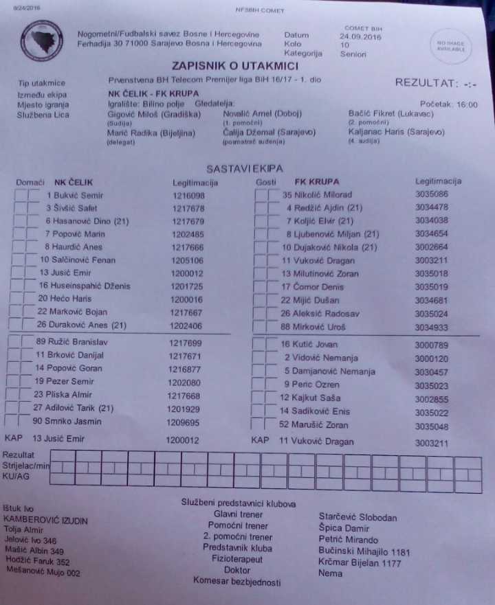 10.kolo Premijer lige BiH, NK ČELIK – FK KRUPA 1:2; Stadion: „Bilino polje” u Zenici; Početak u 16 sati; Gledalaca oko 300, (Jug stadiona i dalje bez najvatrenijih navijača Čelika, popularnih Robijaša, a na sjevernoj tribini oko 20-ak navijača Krupe). Vrijeme sunčano i prohladno (+20 *C). Sudije: Glavni sudija Miloš Gigović (Gradiška), pomoćnici, A1 Arnel Novalić (Doboj –Istok), A2 Fikret Bačić (Lukavac), delegat Radika Marić (Bijeljina).
