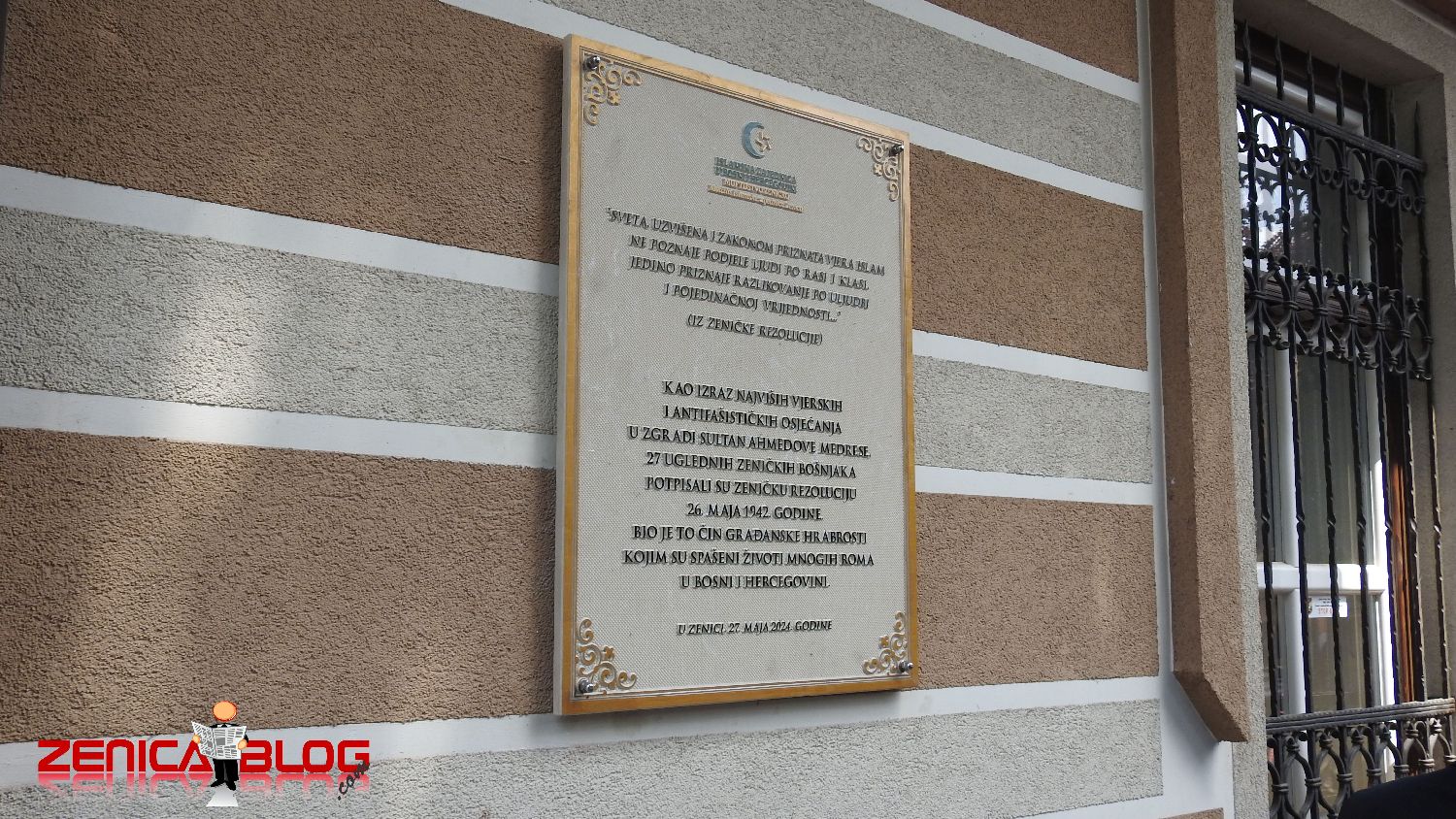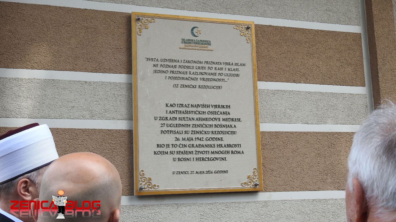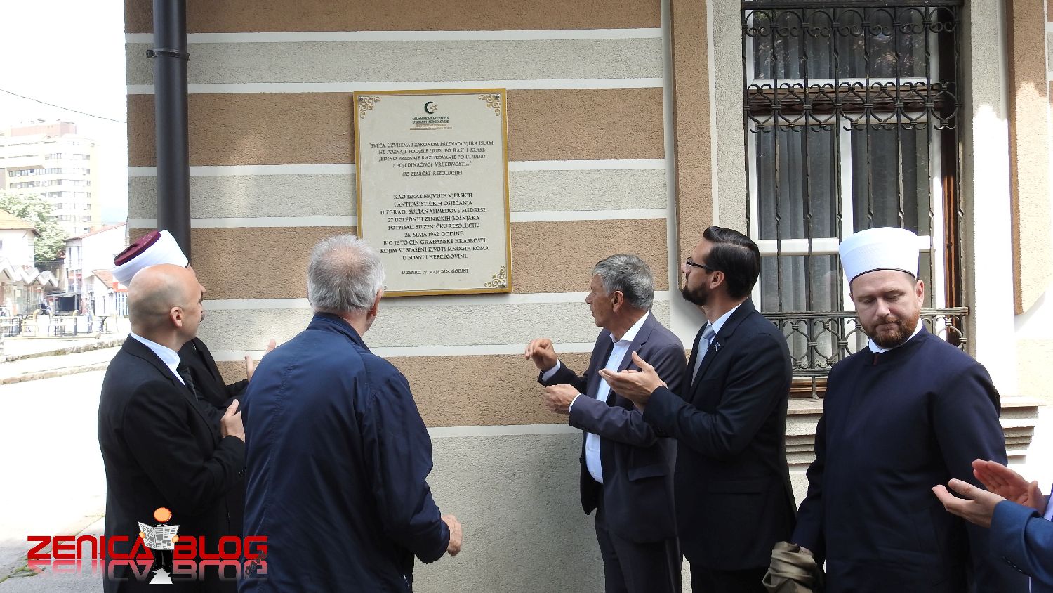 Povodom obilježavanja godišnjice potpisivanja Zeničke rezolucije, koja je 26. maja 1942. godine potpisana s ciljem sprječavanja progona građana romske populacije, danas je na zgradi nekadašnje Sultan Ahmedove medrese u Zenici svečano otkrivena spomen-ploča Zeničkoj rezoluciji.