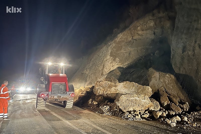 Na mjestu događaja zatekli smo tešku mehanizaciju koja je radila na uklanjanju kamenja sa kolovoza kako bi se uspostavilo nesmetano odvijanje saobraćaja ovom dionicom.