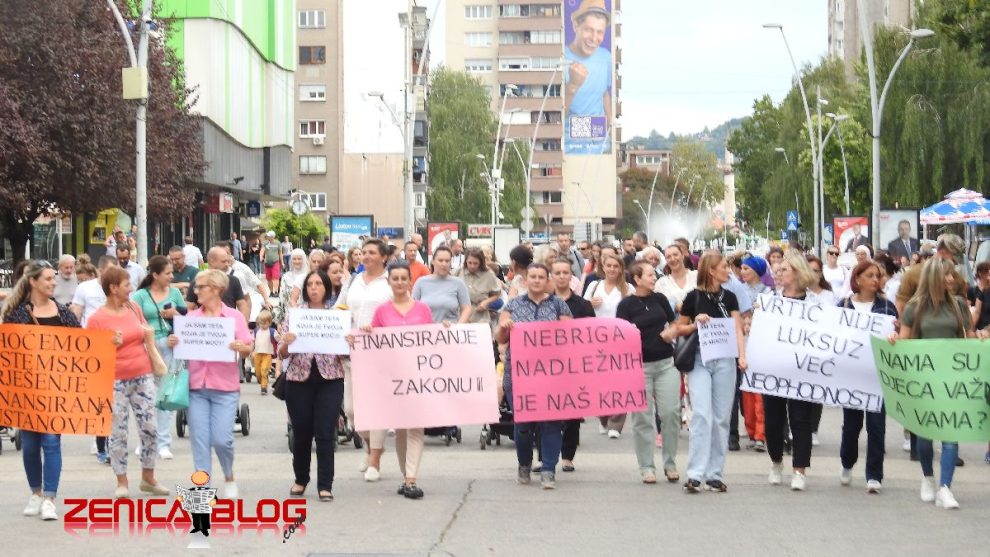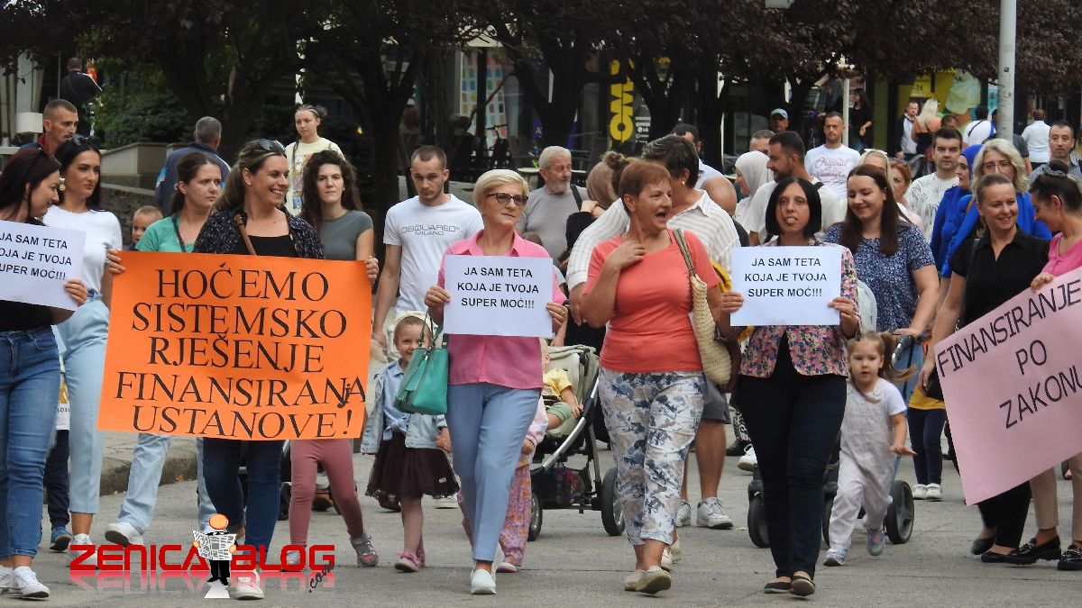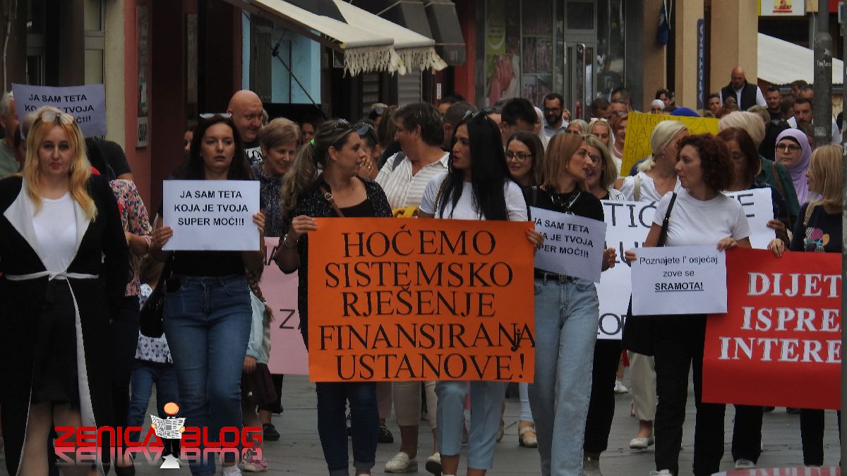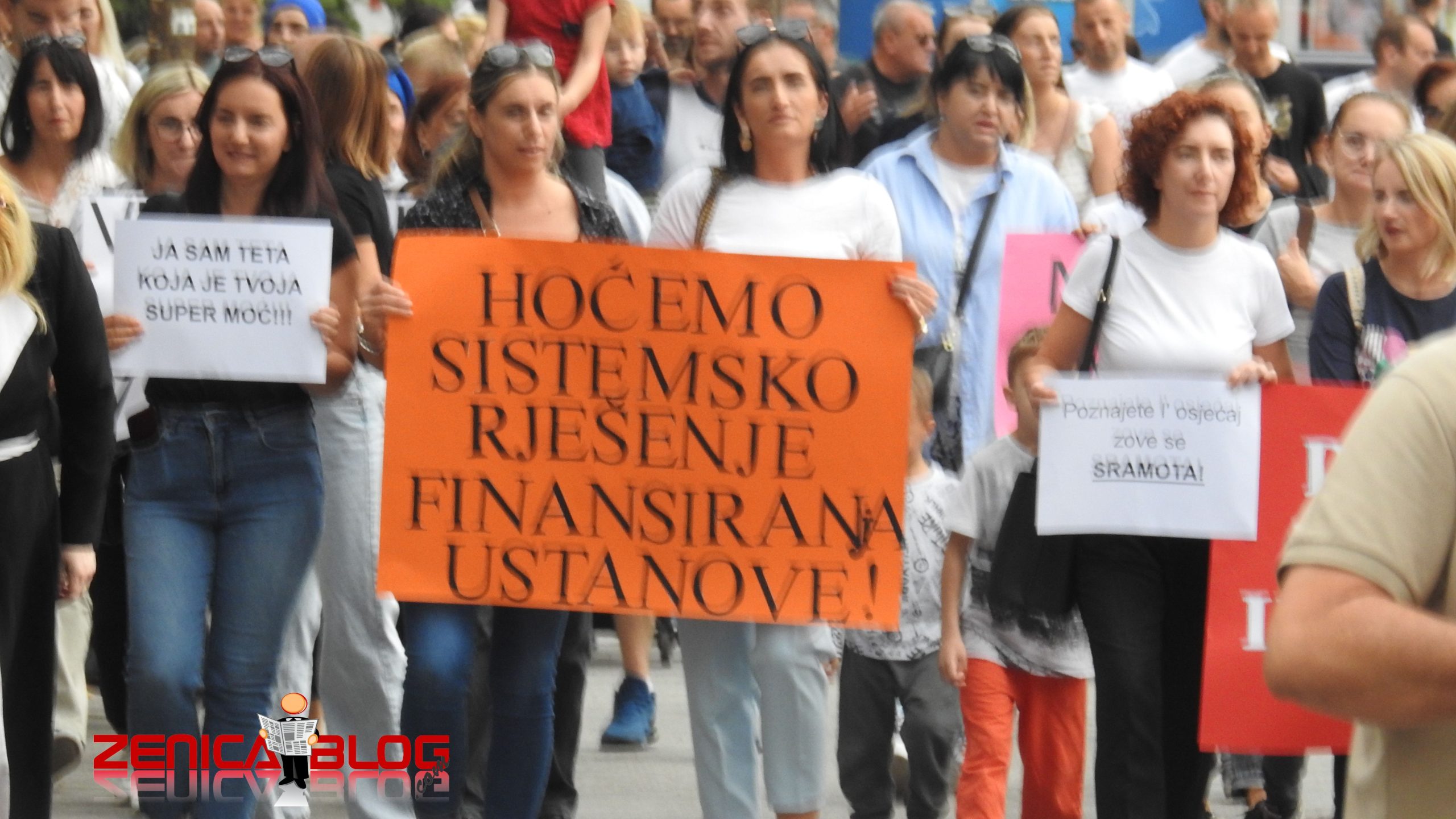 VIDEO+FOTO: Održan protest zaposlenika zeničkih obdaništa, roditelji pružili podršku- Uposlenice i uposlenici Javne ustanove Predškolski odgoj i obrazovanje Zenica danas su organizovali mirnu protestnu šetnju kako bi skrenuli pažnju nadležnih na tešku finansijsku situaciju u kojoj se nalazi i ustanova i uposlenici ustanove.