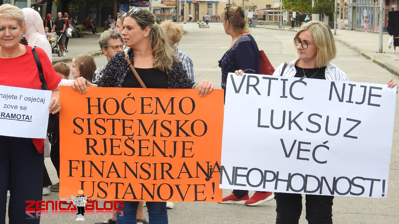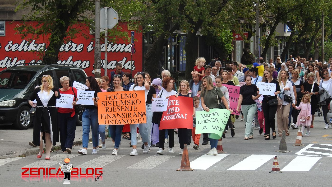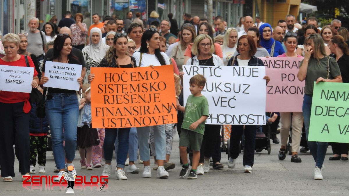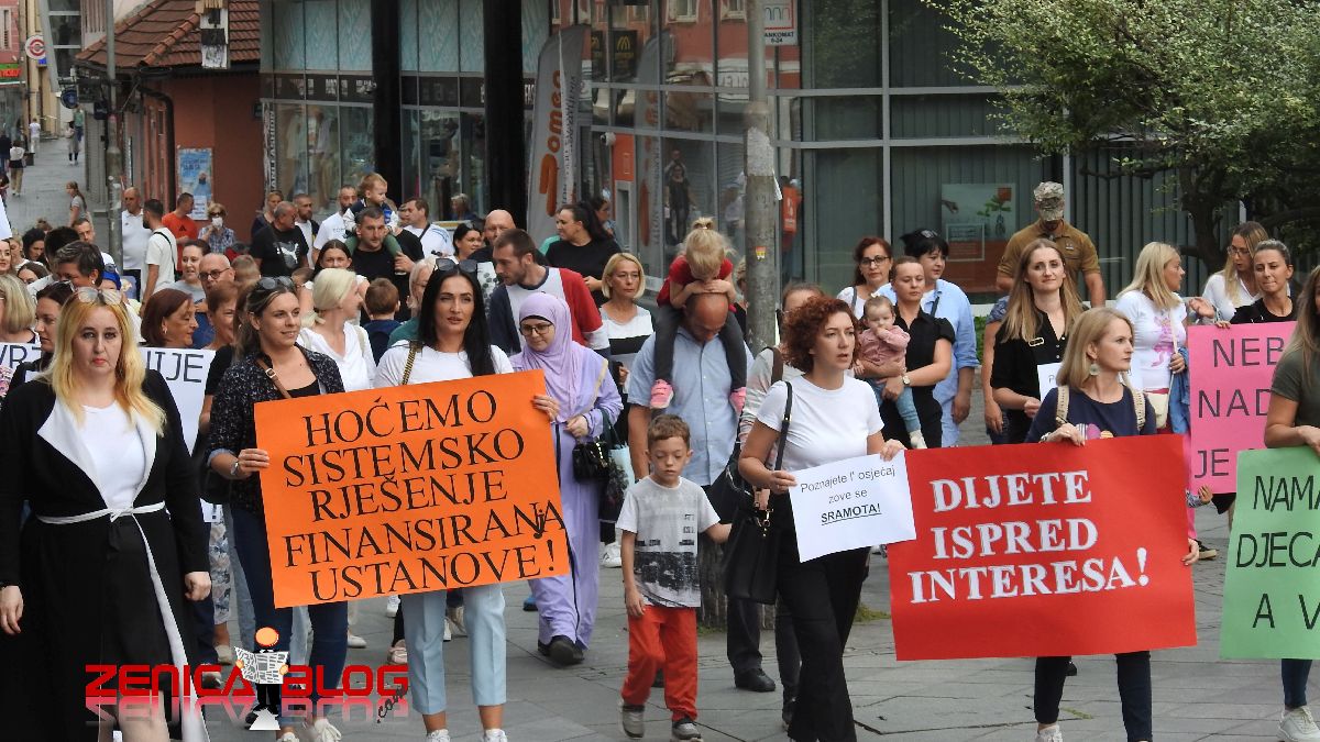 VIDEO+FOTO: Održan protest zaposlenika zeničkih obdaništa, roditelji pružili podršku- Uposlenice i uposlenici Javne ustanove Predškolski odgoj i obrazovanje Zenica danas su organizovali mirnu protestnu šetnju kako bi skrenuli pažnju nadležnih na tešku finansijsku situaciju u kojoj se nalazi i ustanova i uposlenici ustanove.