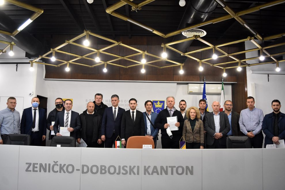 VIDEO+FOTO: Općinama i javnim komunalnim preduzećima 1,5 miliona KM za zbrinjavanje komunalnog otpada i uklanjanje divljih deponija- Ministarstvo za prostorno uređenje, promet i komunikacije i zaštitu okoline Zeničko-dobojskog kantona potpisalo je danas s predstavnicima lokalnih zajednica i javnih komunalnih preduzeća ugovore o finansiranju projekata pomoći zbrinjavanja komunalnog otpada, održavanja i sanacije postojećih općinskih odlagališta, finansiranja troškova transporta otpada na regionalnu deponiju, čišćenje obala rijeka, te čišćenja i sanacije divljih deponija. U okviru dva LOT-a potpisana su 24 ugovora ukupne vrijednosti jedan milion i 558.000 KM.